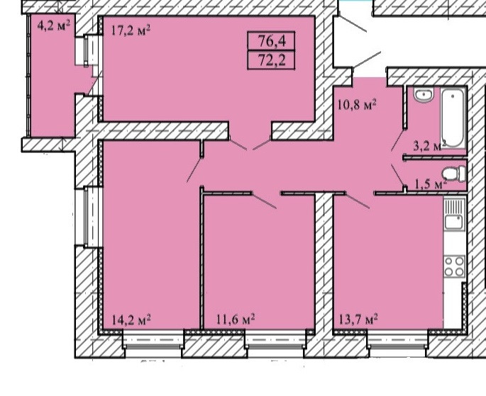 Общая площадь 78.3 м2
