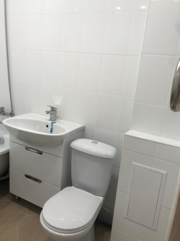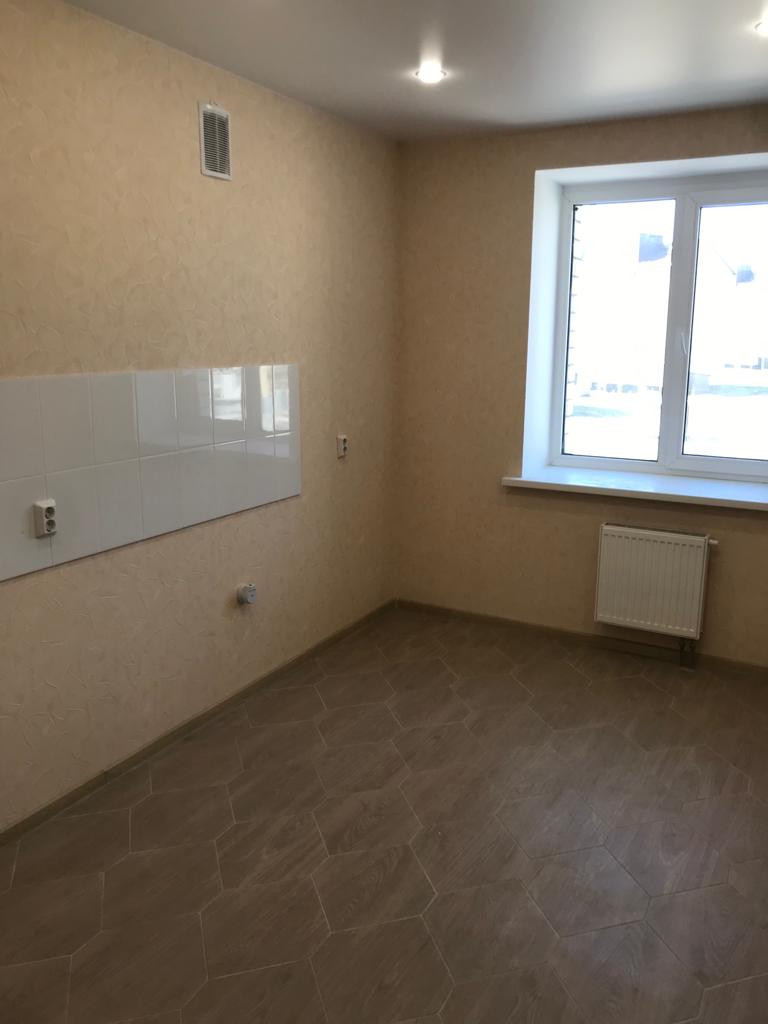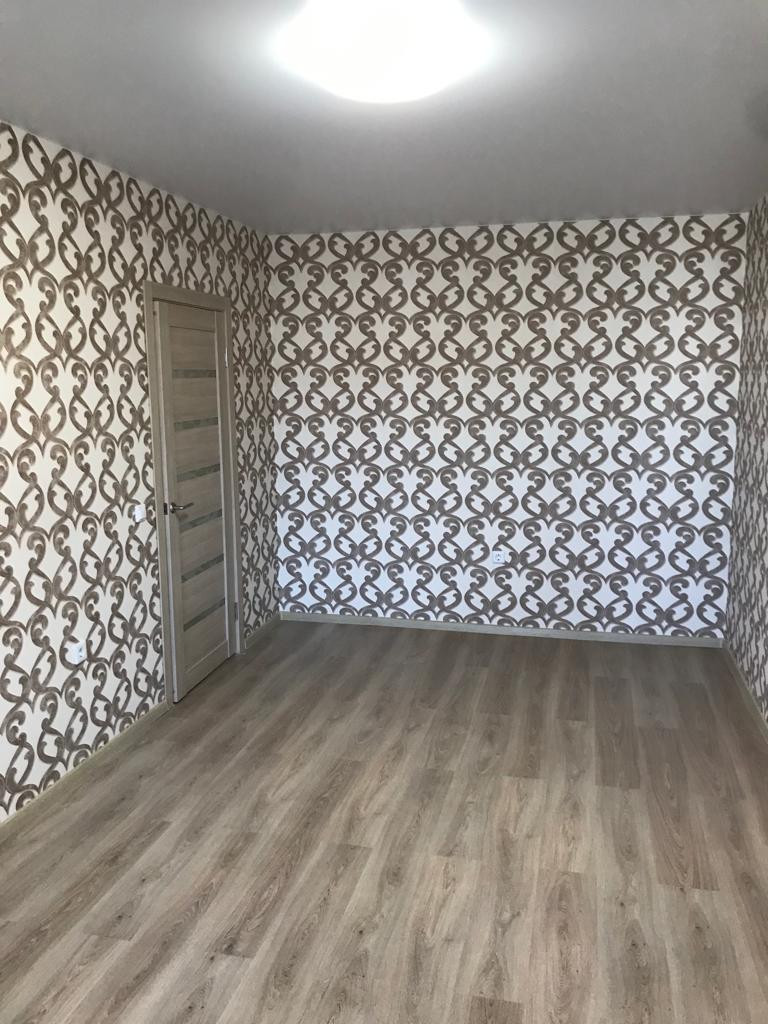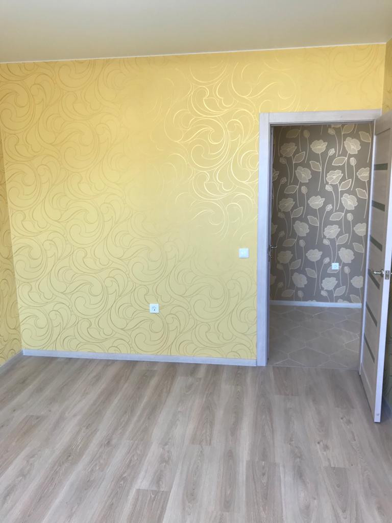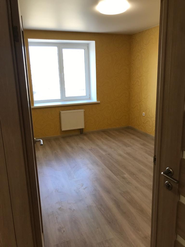 В квартире выполнен качественный ремонт, установлена сантехника в ванной комнате, межкомнатные двери, на полу ламинат и плитка. Окна выходят во двор. В квартире никто не жил.