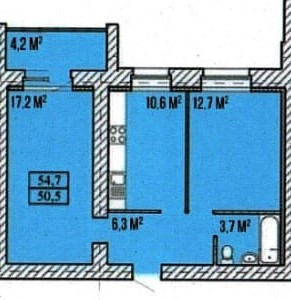 Общая площадь 54.7 м2