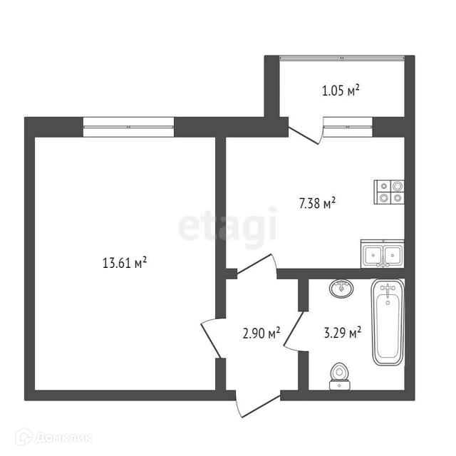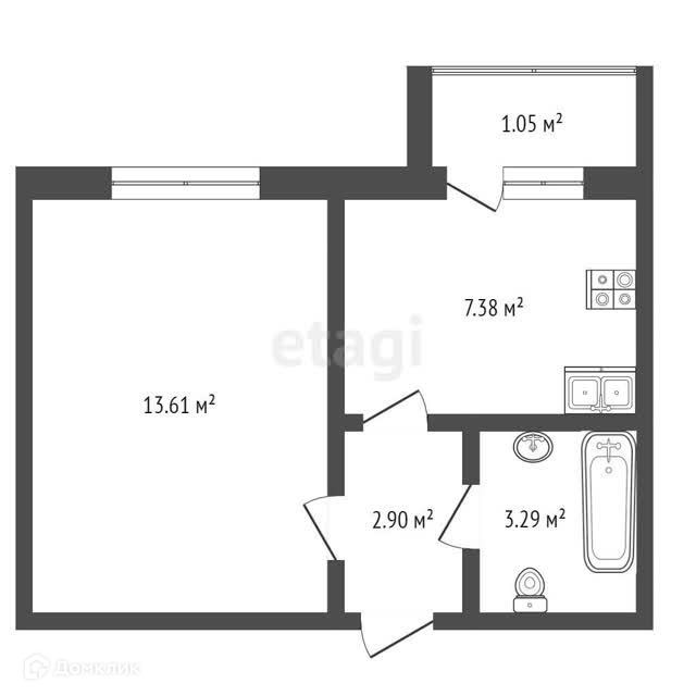 Квартира расположена на 3 этаже кирпичного 5-ти этажного дома. Общая площадь квартиры - 28,3 кв.м, кухня - 7,38. Санузел совмещенный.