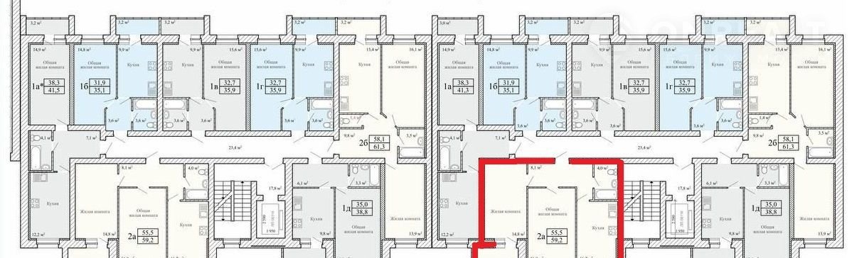 Общая площадь 55.5 м2