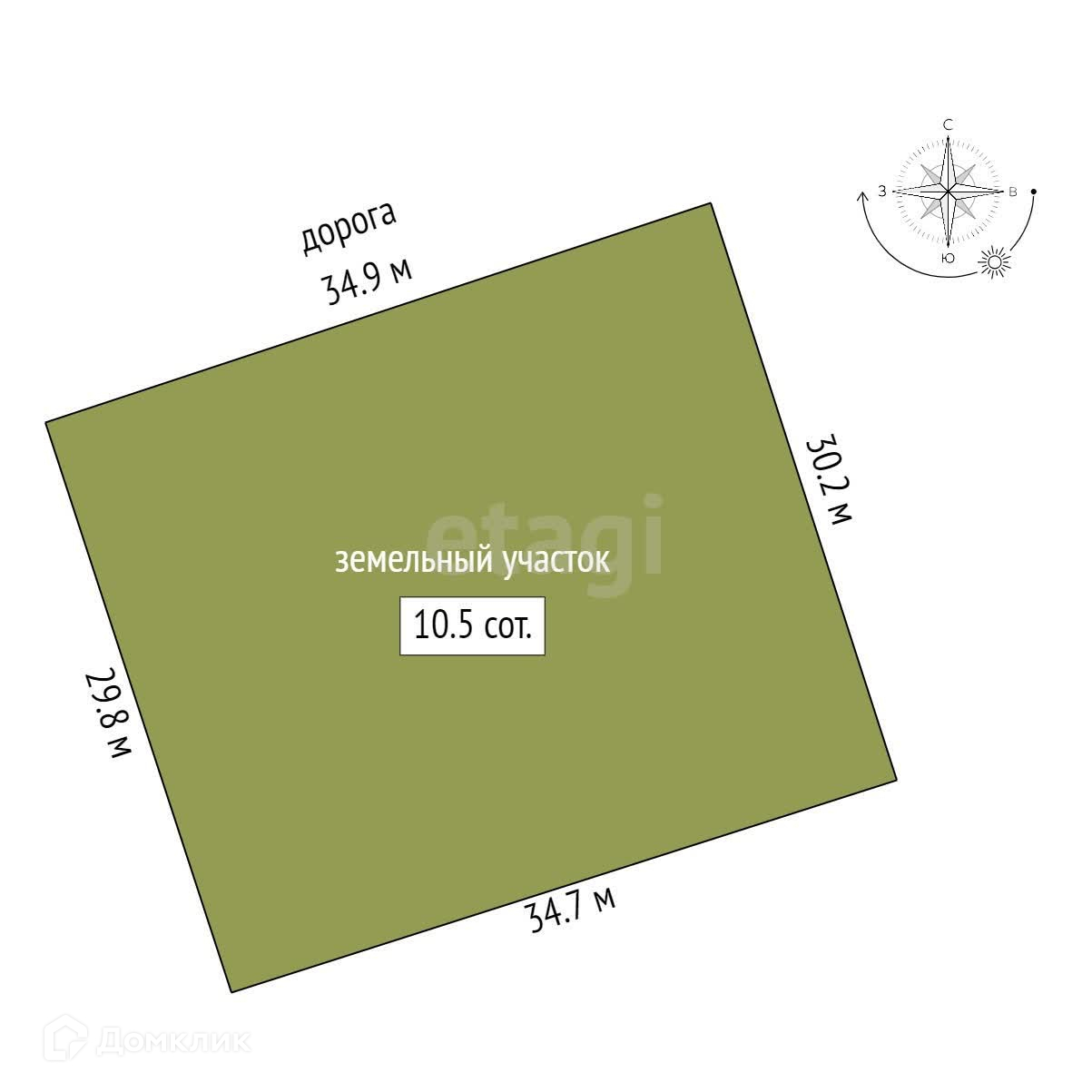 Участок правильной формы 10,5 соток земли.