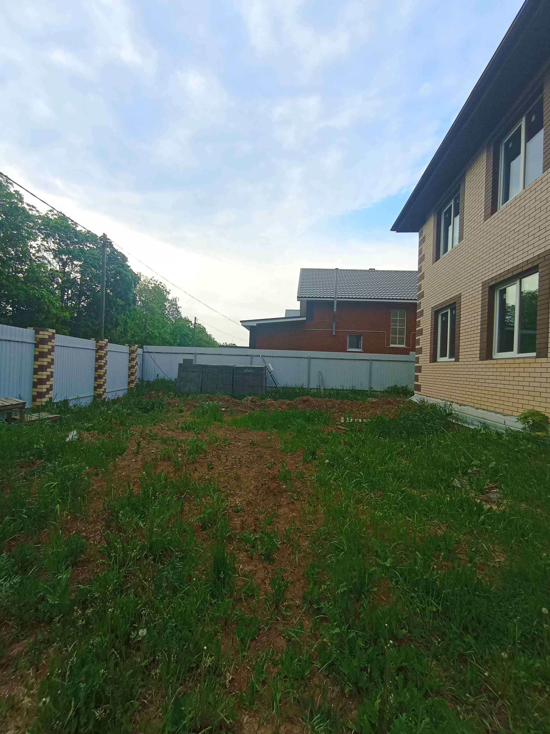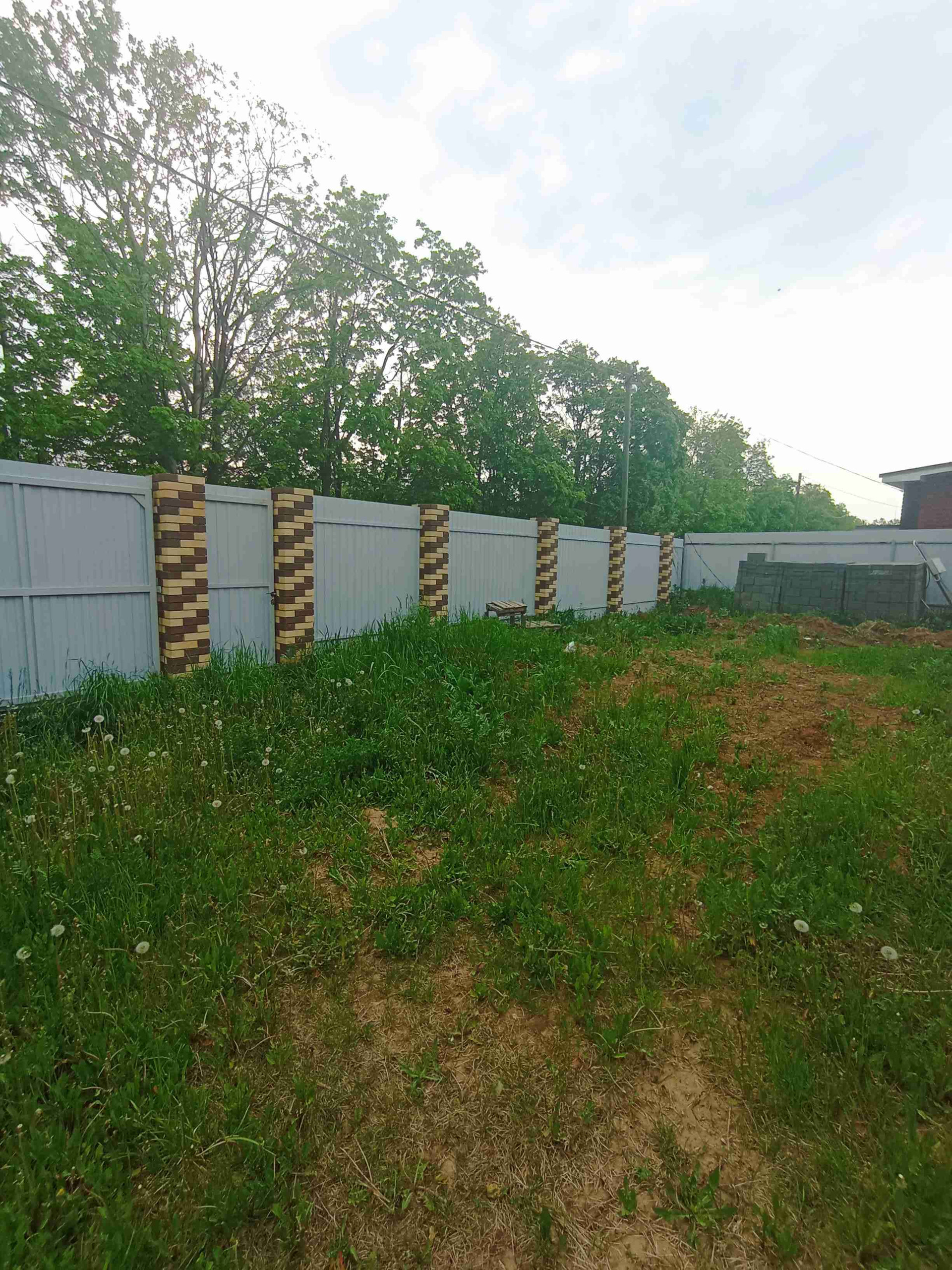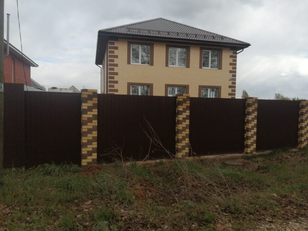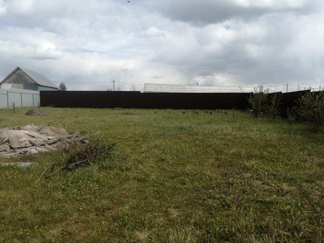 Забор из профнастила пр всему периметру дома. Ровный участок.