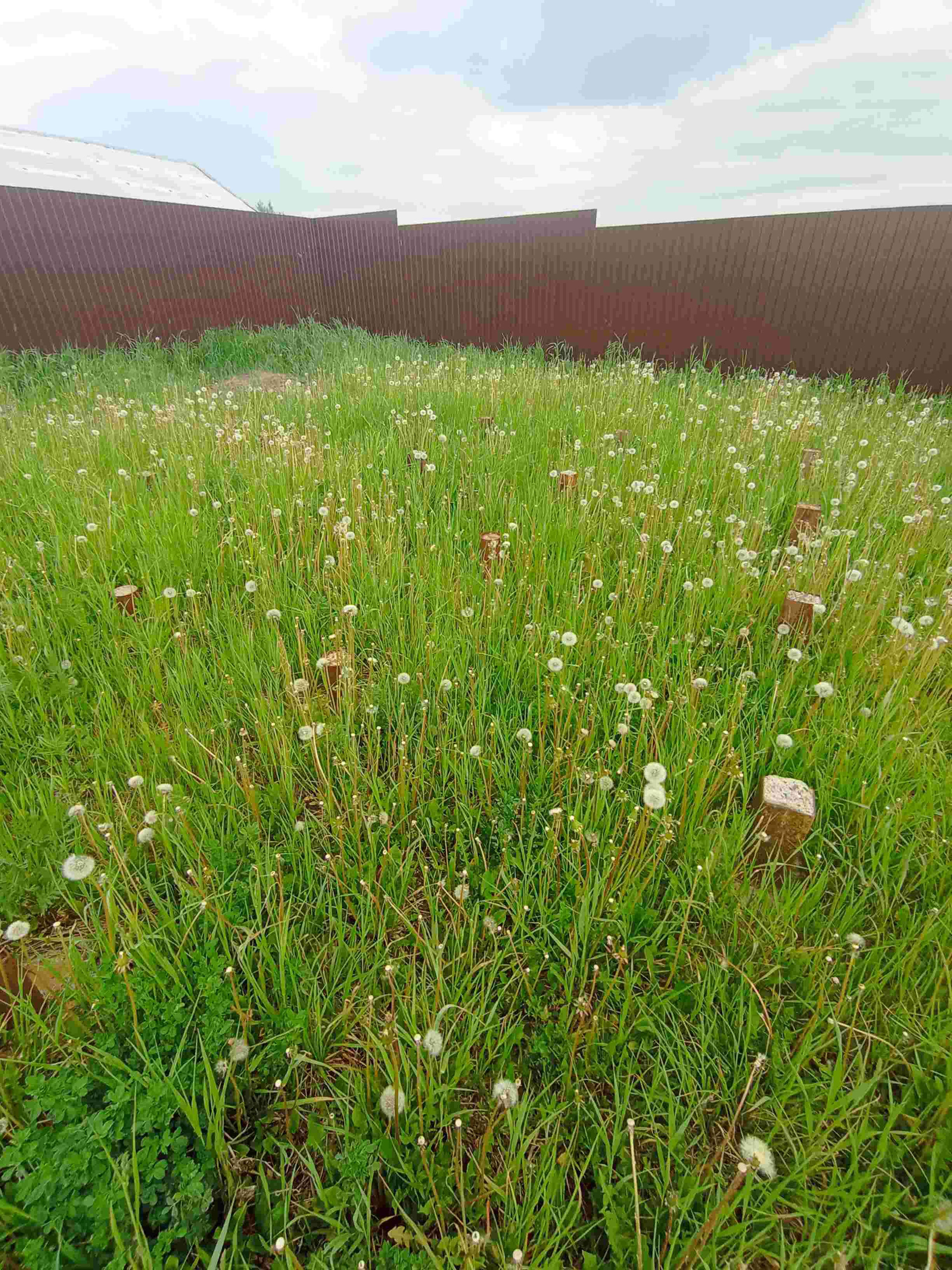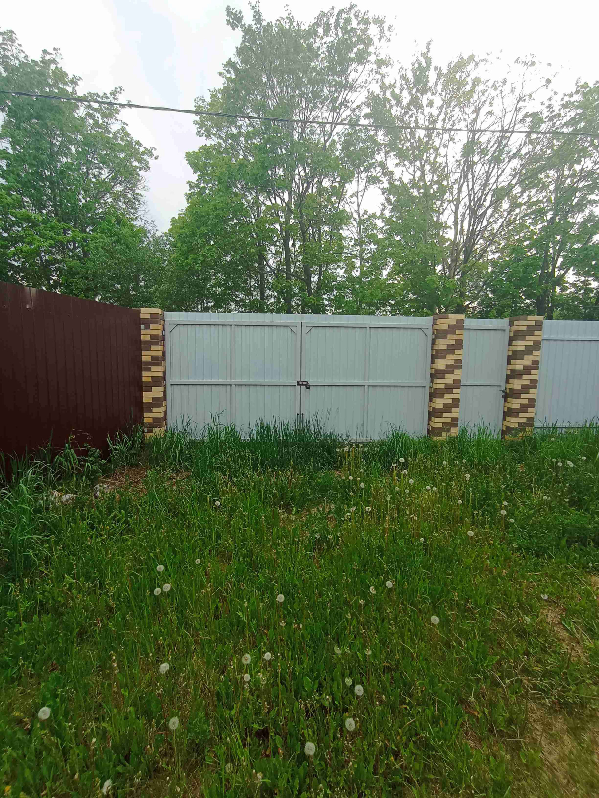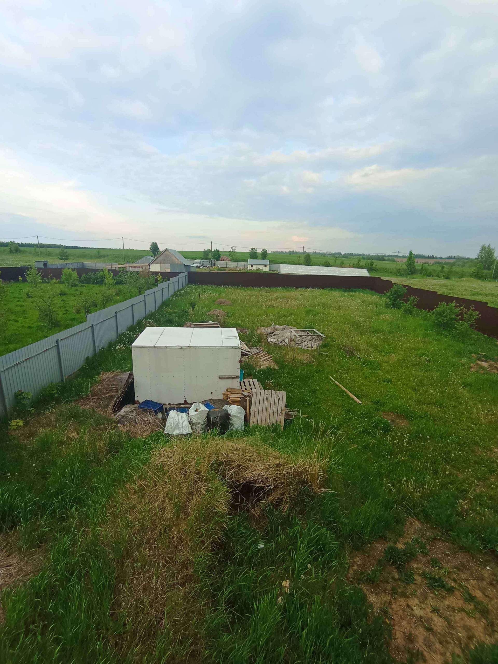 Забор из профнастила пр всему периметру дома. Ровный участок.