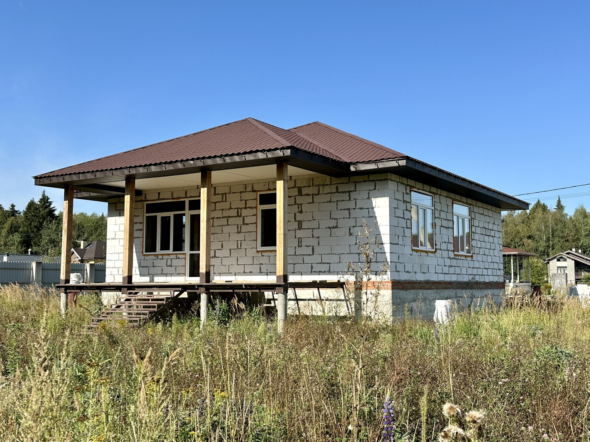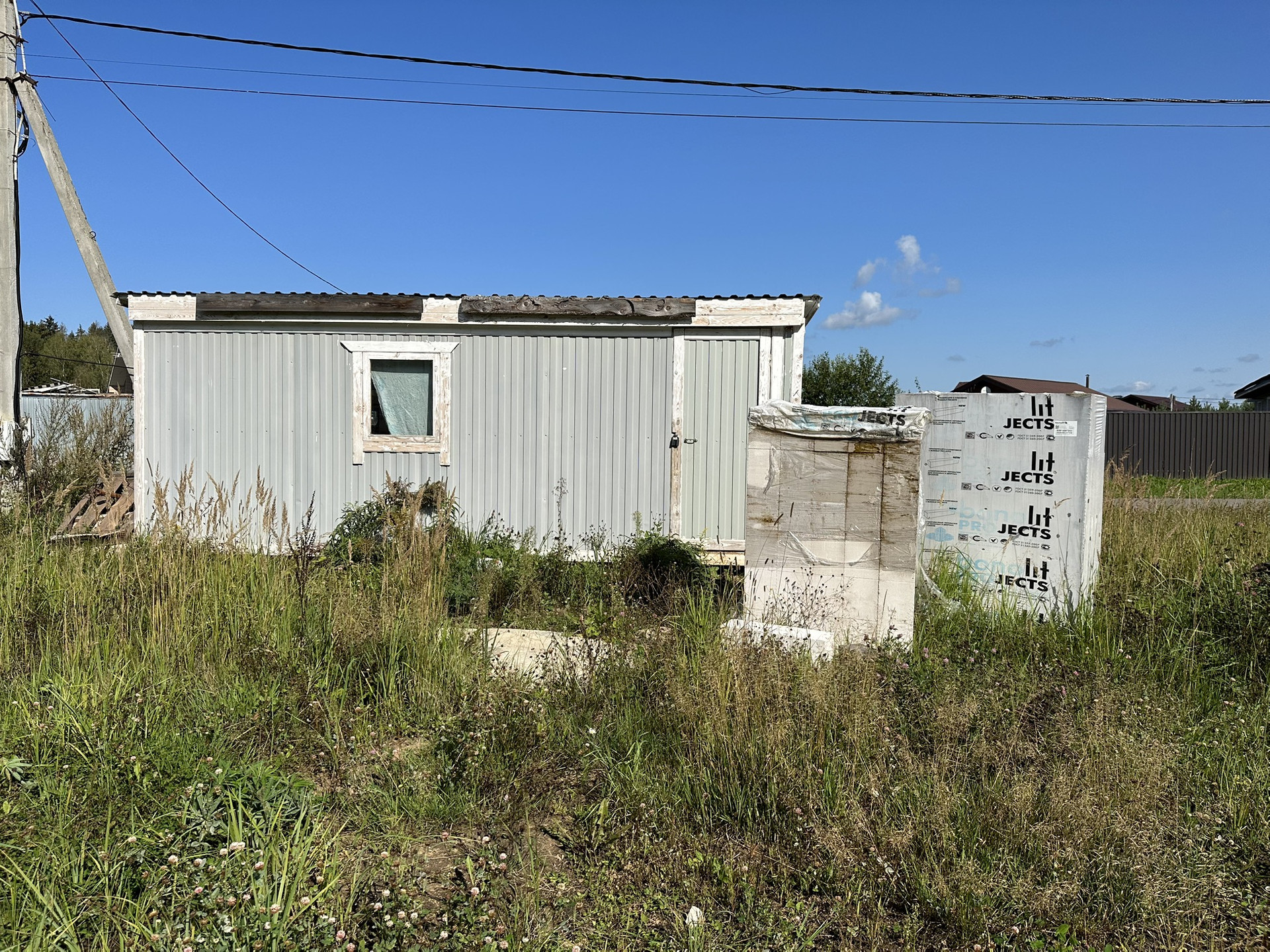 На территори дома расположена бытовка для проживания рабочих либо хранения личных вещей. Респектабельные соседи.