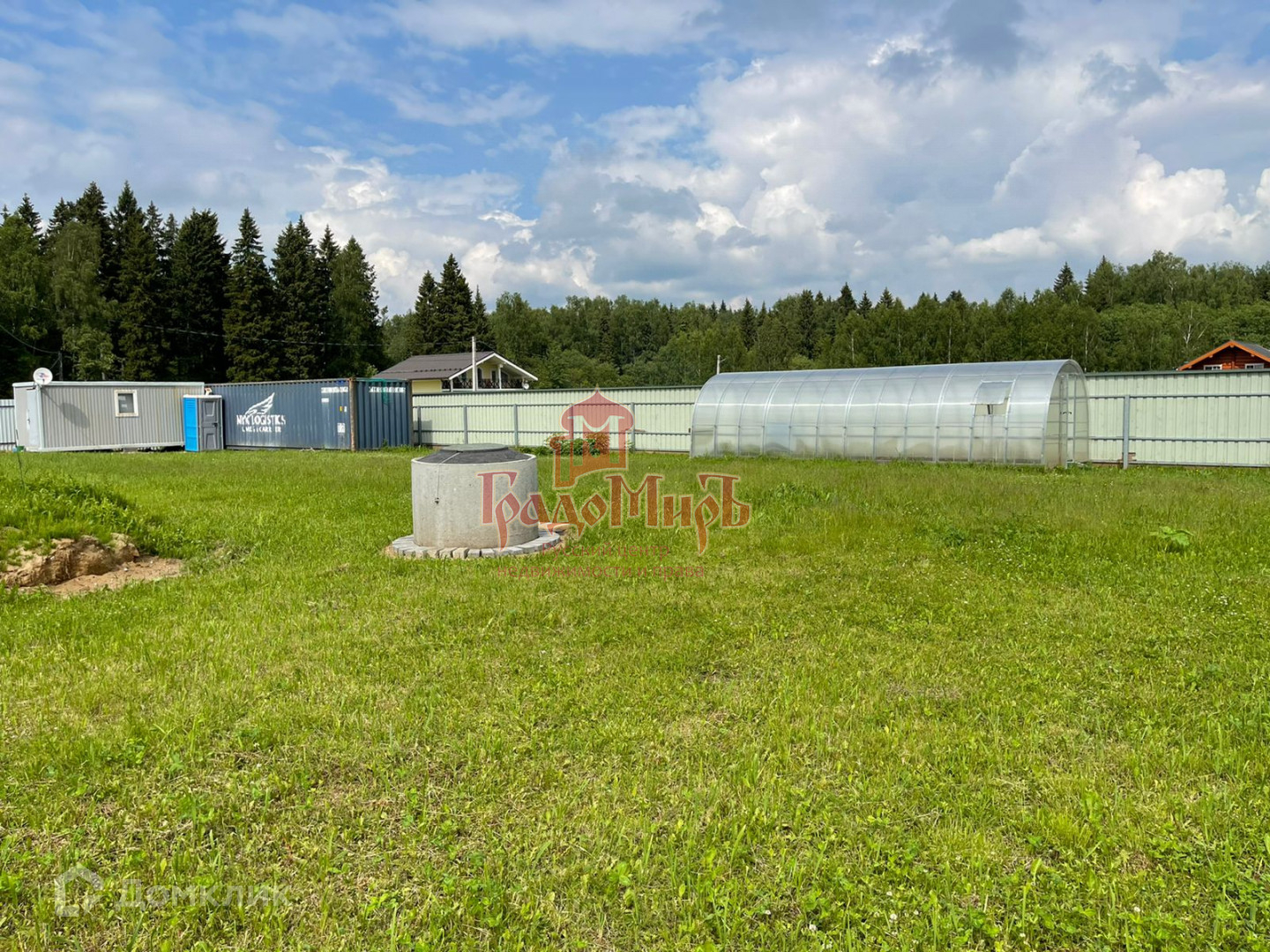 Участок ровный, правильной  прямоугольной формы, проведено электричество, есть колодец, теплица. Также оборудованный контейнер для проживания 2 человек (выл установлен на время строительства основного дома) и грузовой контейнер.