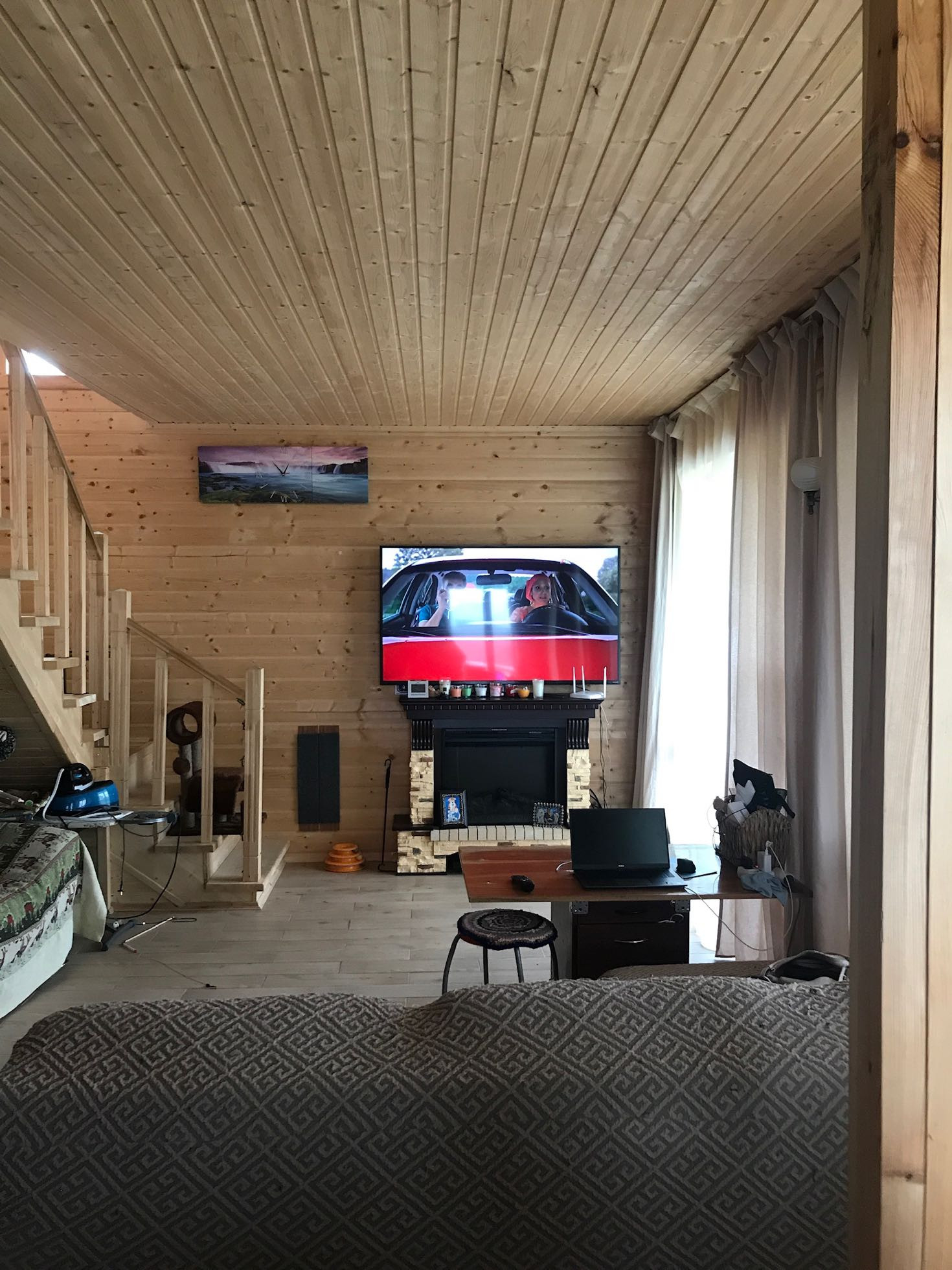 На первом этаже одна изолированная комната, кухня-гостиная, санузел (ванна), бойлерная, большая веранда, закрыта мягкими окнами.