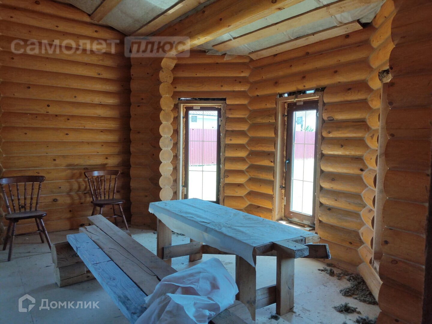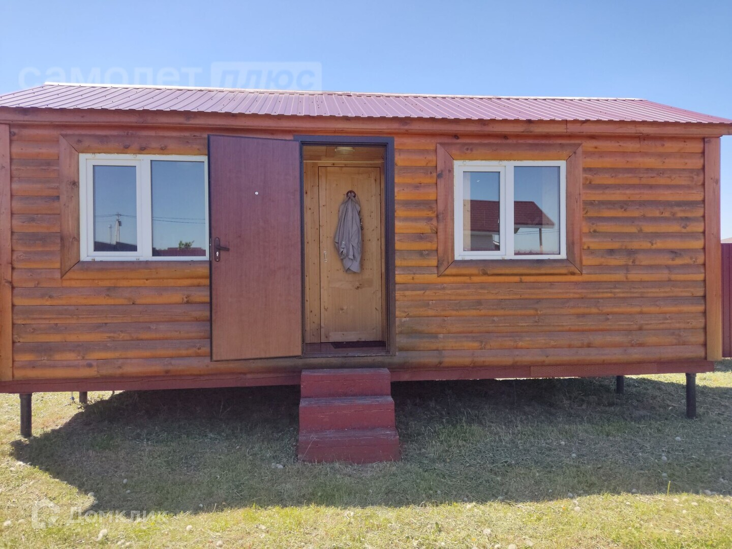 На участке дом из оцилиндрованного бревна 50 м.кв, фундамент монолитная лента со сваями, кровля металлочерепица, окна пластиковые, входная дверь металлическая. Электричество, водоснабжение в дом не заведены. На участке имеется бытовка, внутри отделана вагонкой, снаружи блок-хаус ,окна пластиковые, две комнаты, кладовка, вода заведена в бытовку, горячая нагреватель, душ, биотуалет.