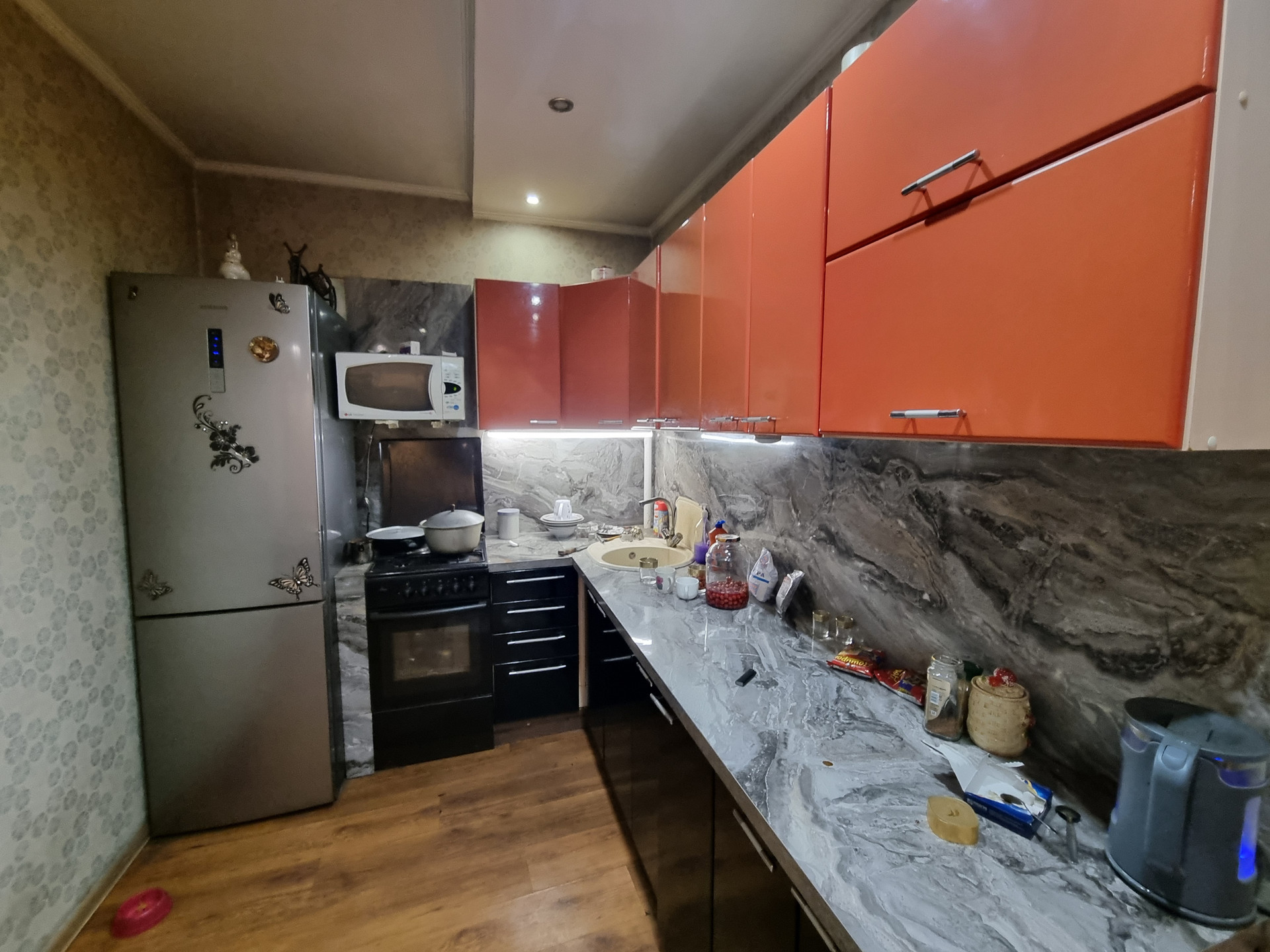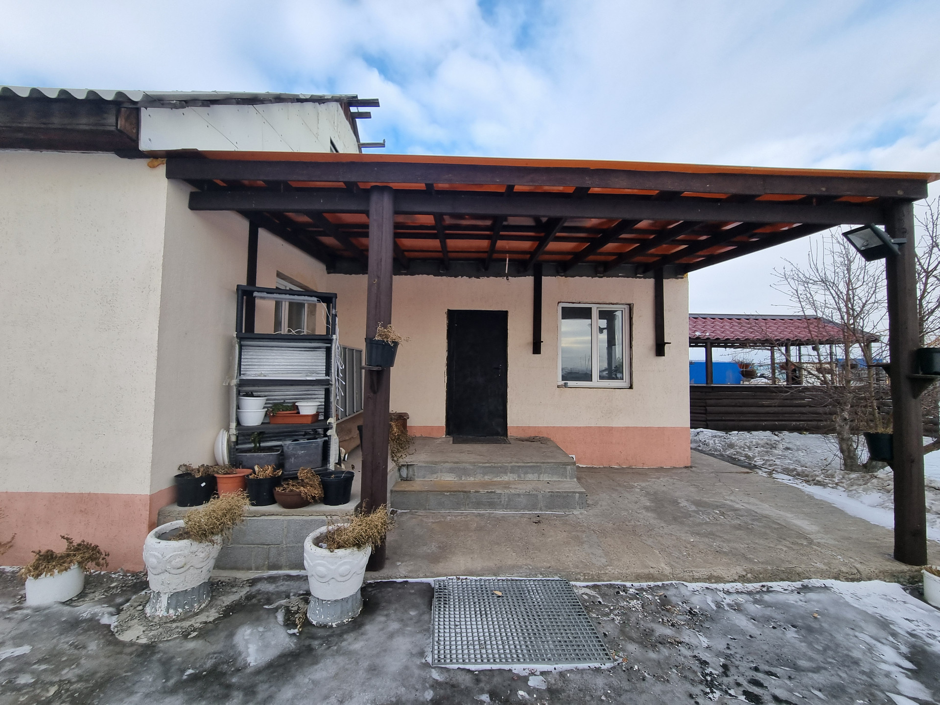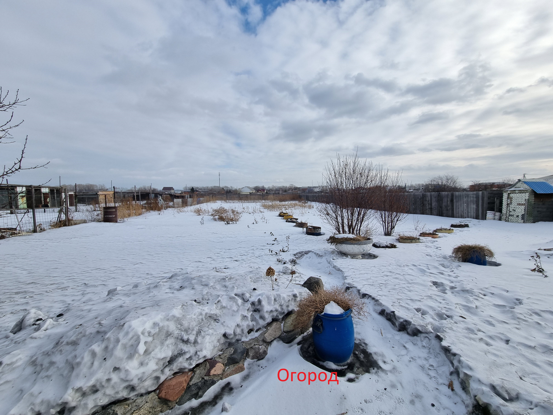 - Земля 17,5 соток, (земли поселений). На участке имеется беседка с крышей, тандыр, хоз.постройки, разработанный огород. Участок ровный, ухоженный, дорожки выложены черепицей, везде подвесные клумбы, много плодоносных деревьев и кустарника. (Яблони, груша, вишня, малина, смородина и другое). Ворота из профлиста.