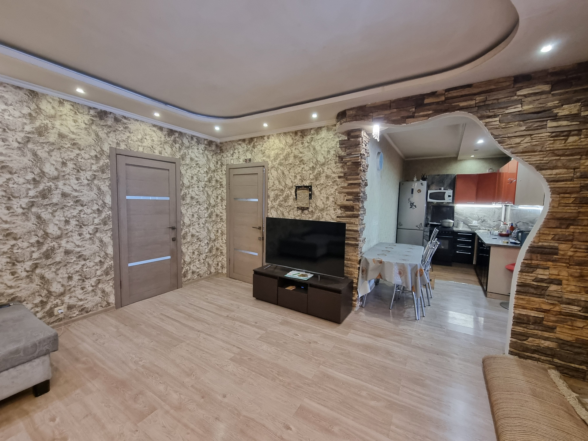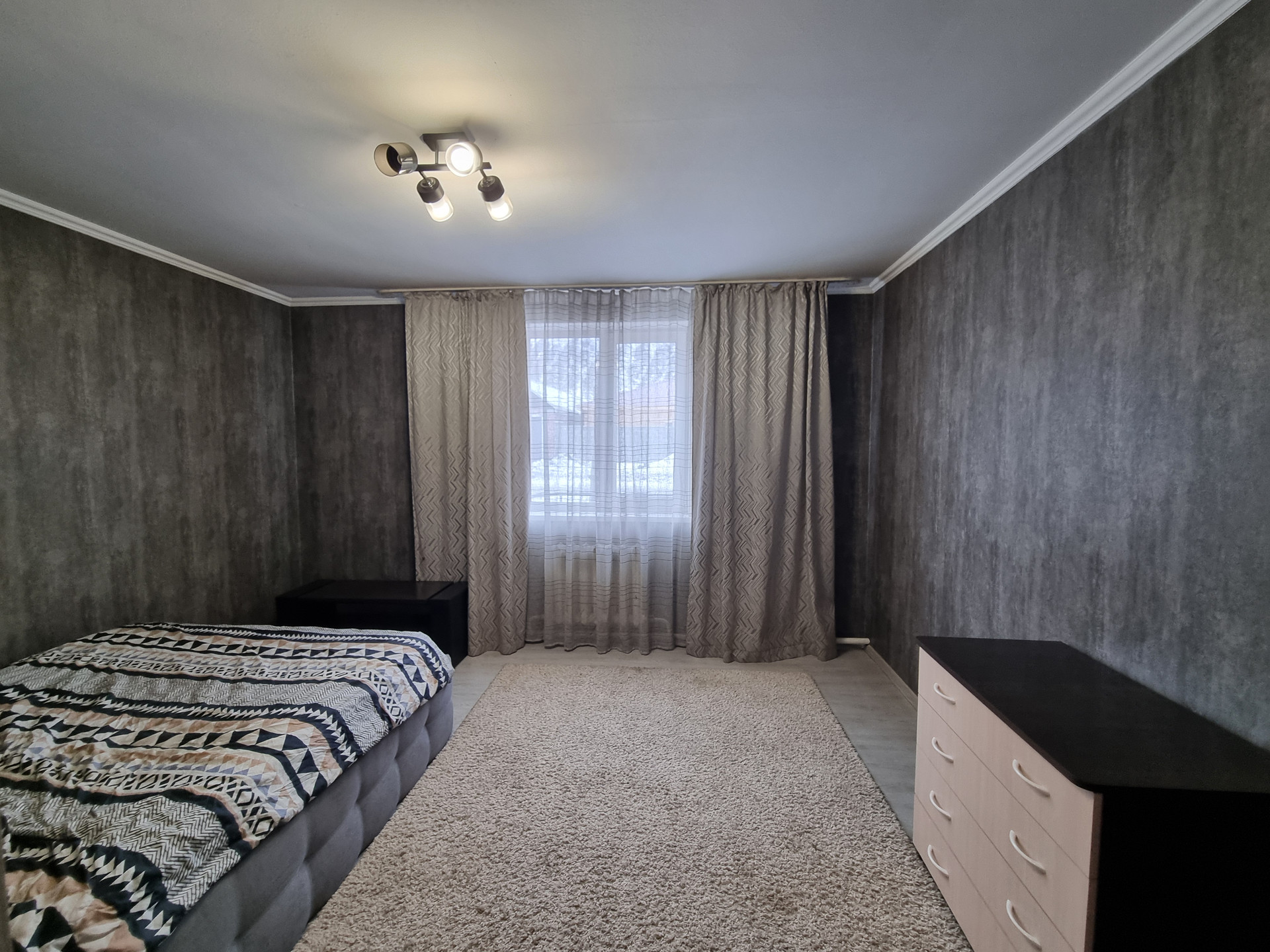 - Площадь дома 96,8 кв.м. Просторный холл 12 кв.м., кухня – гостиная 29 кв.м., 2 спальни 25 и 15 кв.м., просторная ванная комната 9,2 кв.м., в доме есть погреб 9 кв.м. Высота потолка 2,8 м. Есть второй этаж мансардный без отделки и утепления. В доме остается частично мебель – кухонный гарнитур, встроенный шкаф, кровать, другие мелочи.