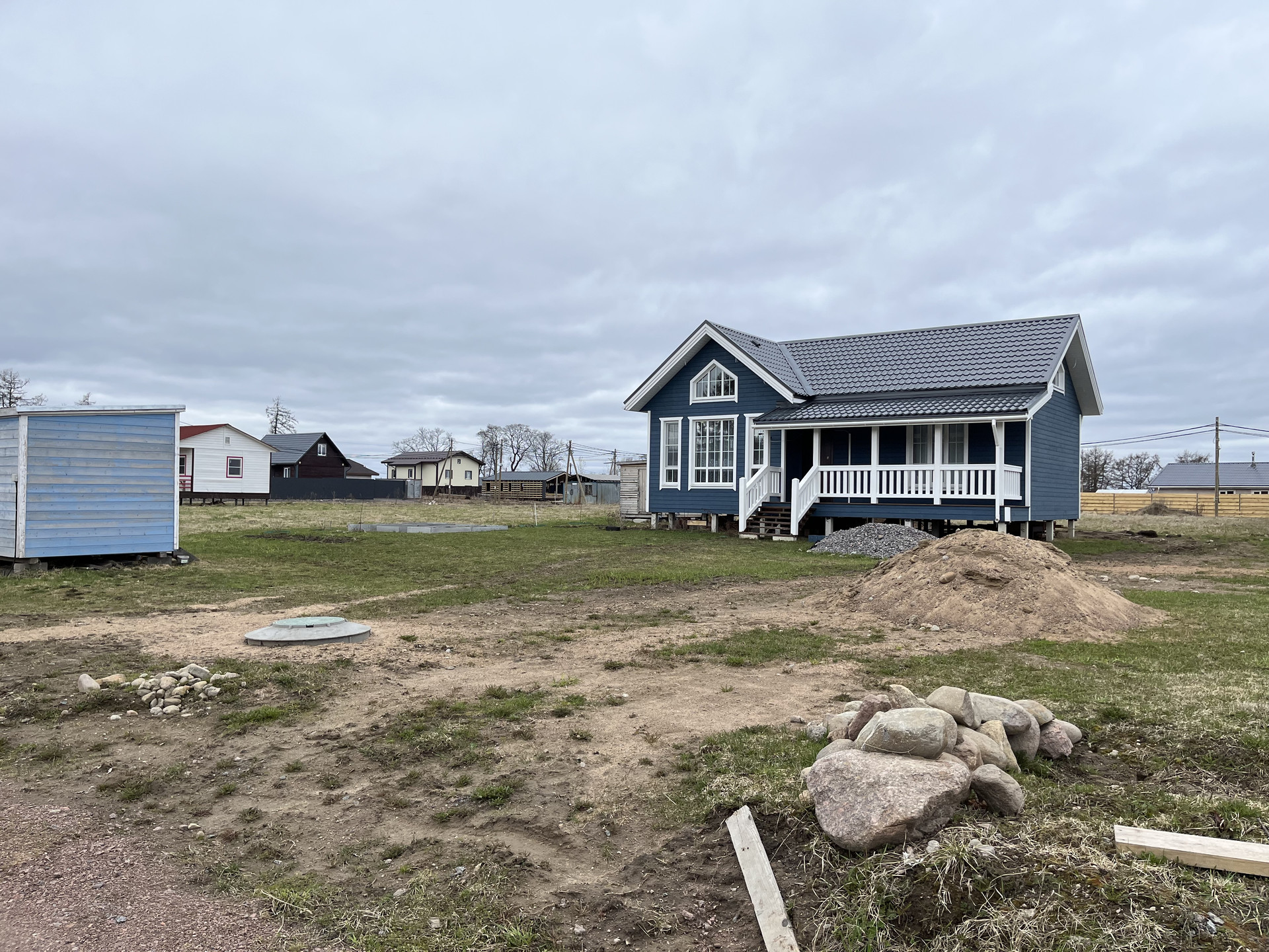 Участок ровный, сухой, находится на возвышенности, не огорожен забором, на участке есть маленький утепленный вагончик для рабочих, можно использовать как хоз.блок, дровяник для дров, дорога подъездная грунтовая, хорошие соседи.