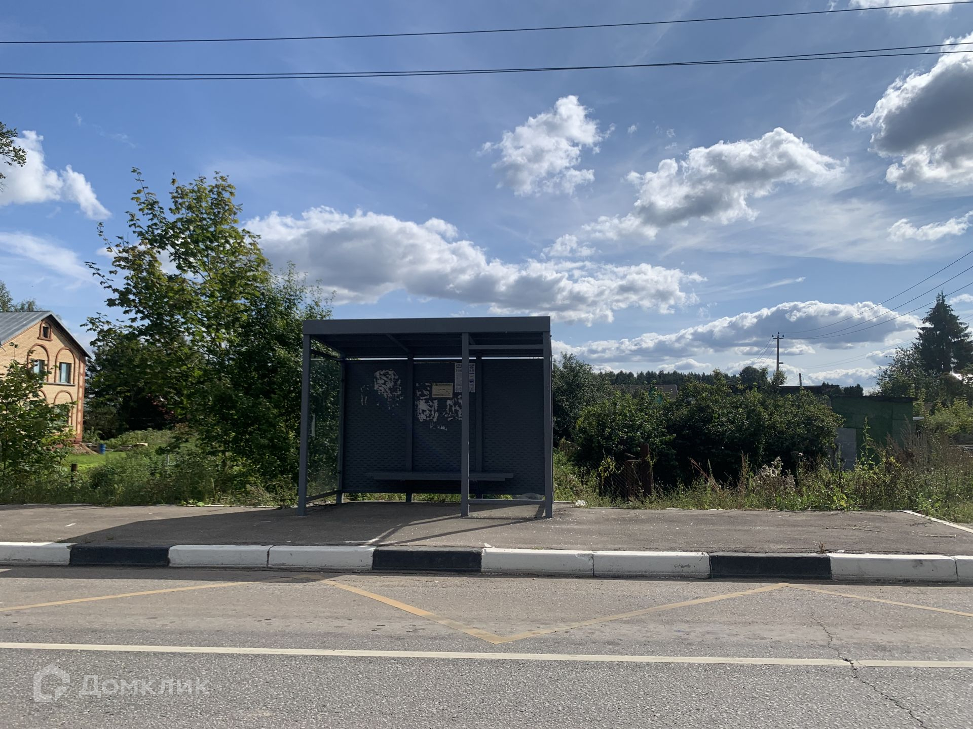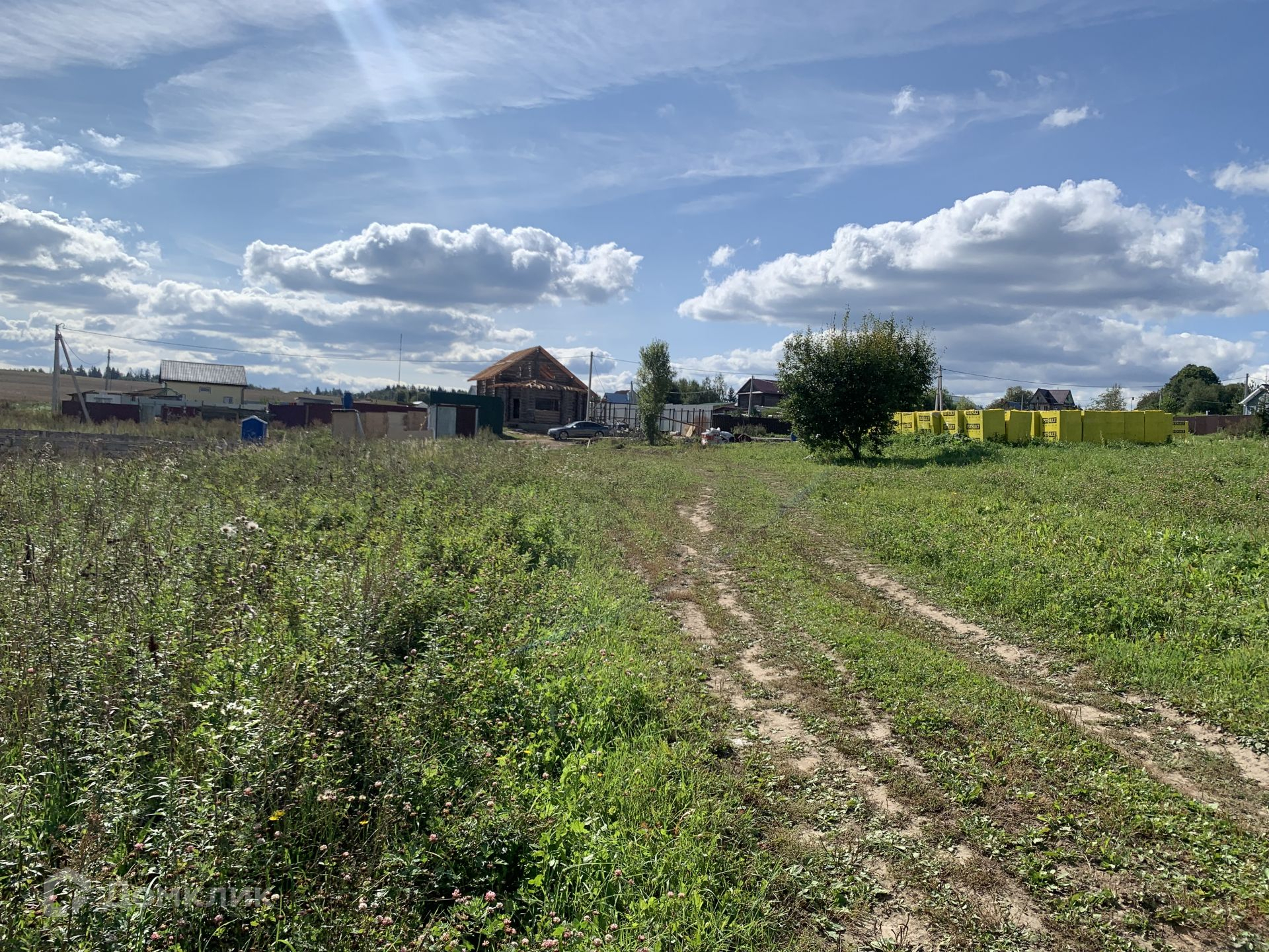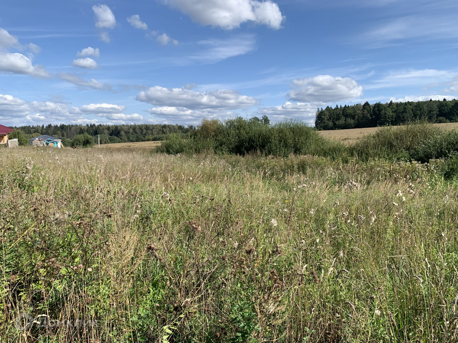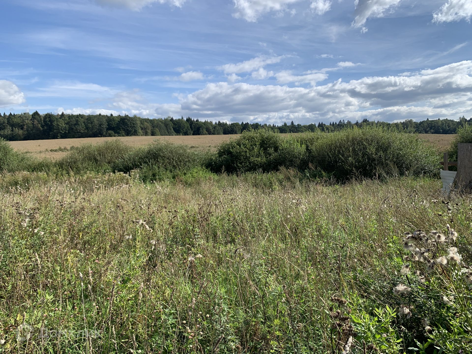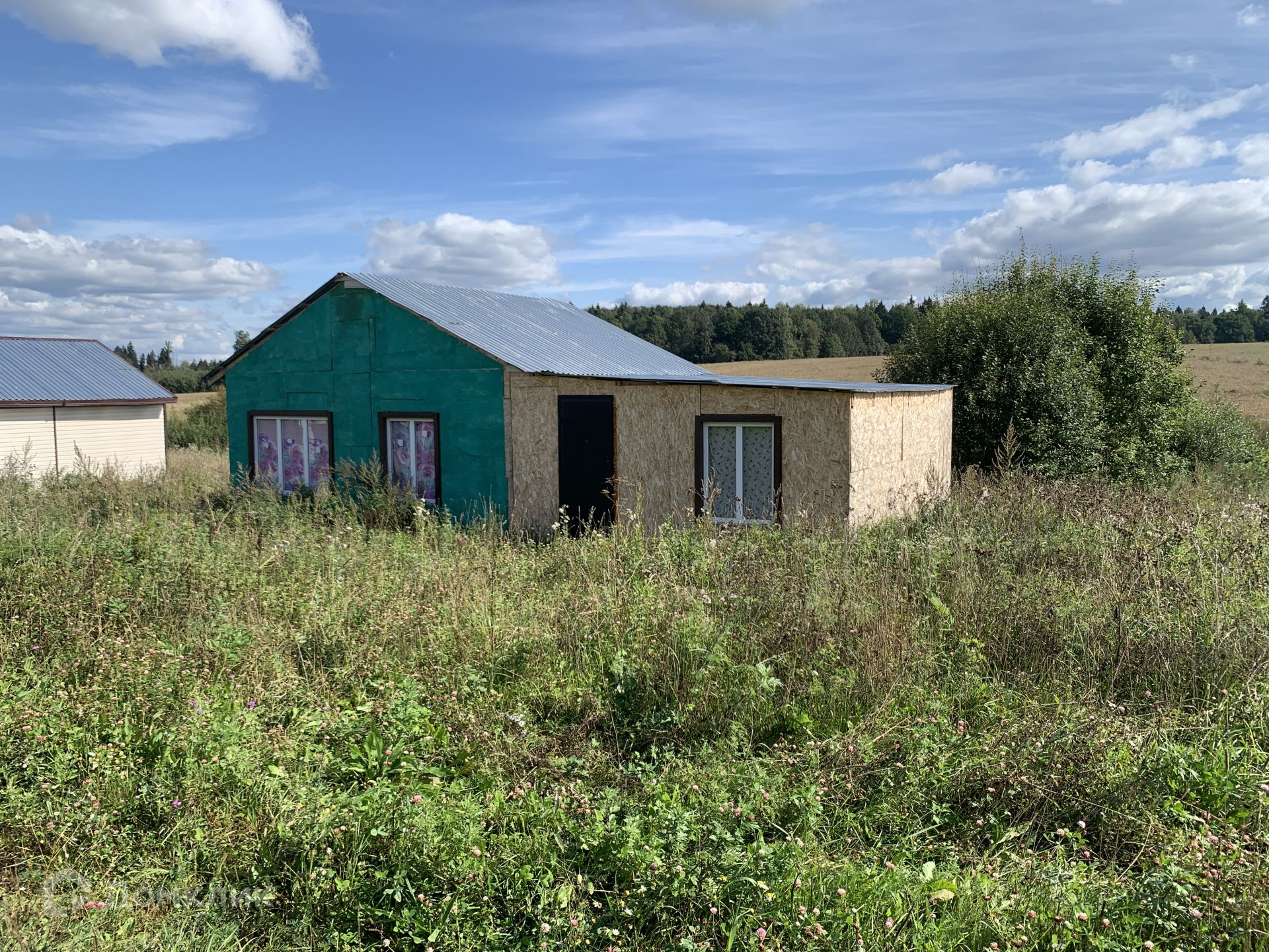 Участок имеет ровную форму с наклоном, на участке находится домик под снос из фанеры, он может пригодиться к примеру как бытовка для строителей если что.