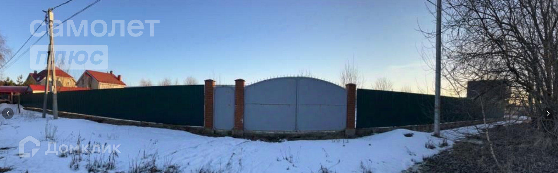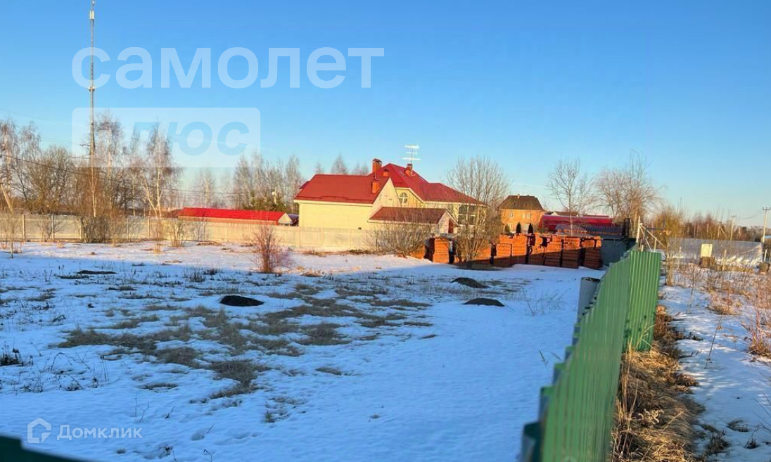 Участок ровный, огороженный металлическим забором на бетонном основании, имеются ворота и три калитки.