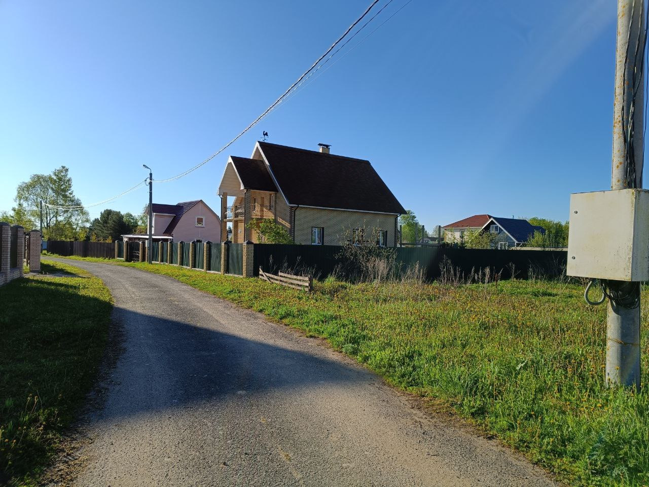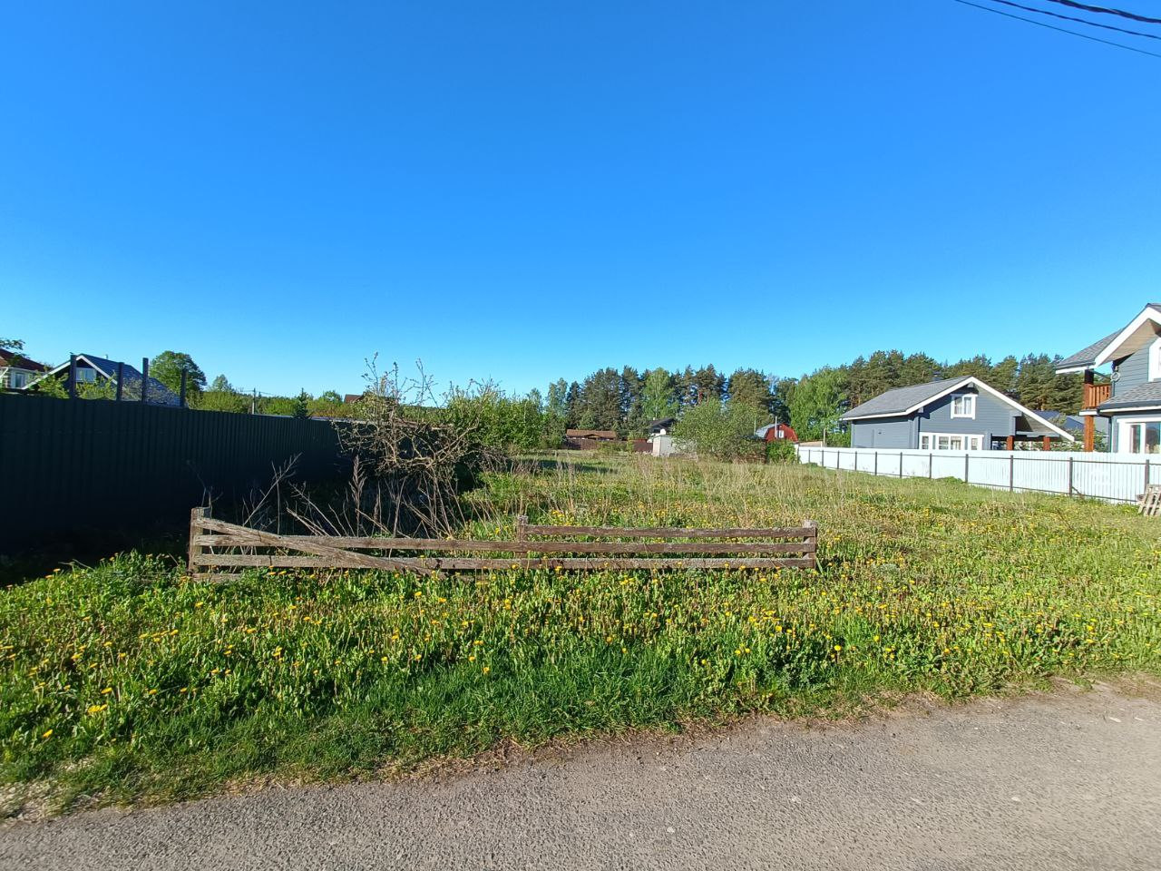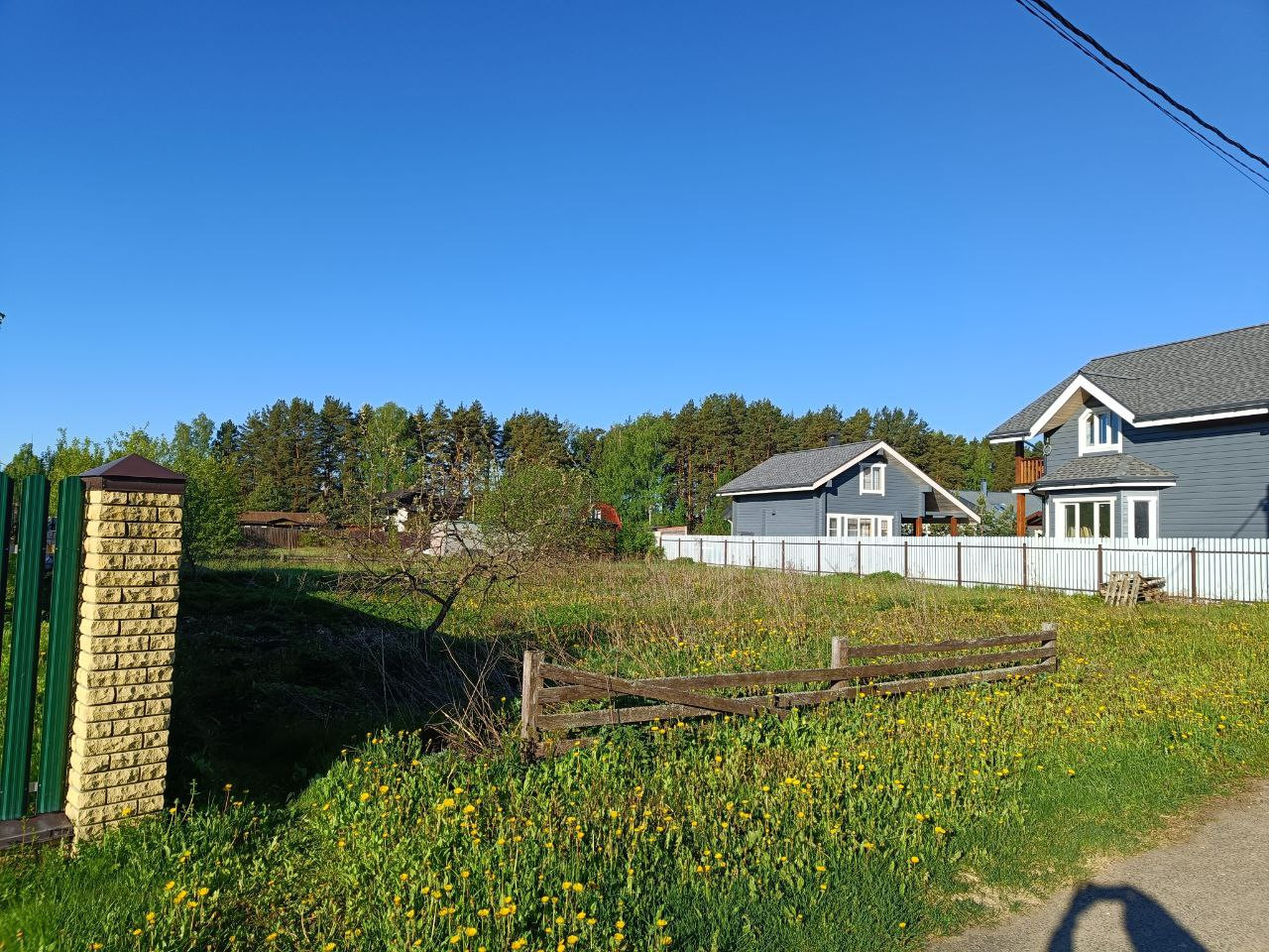 9,43 сотки. С двух сторон соседи построились. Посёлок очень уютный,
