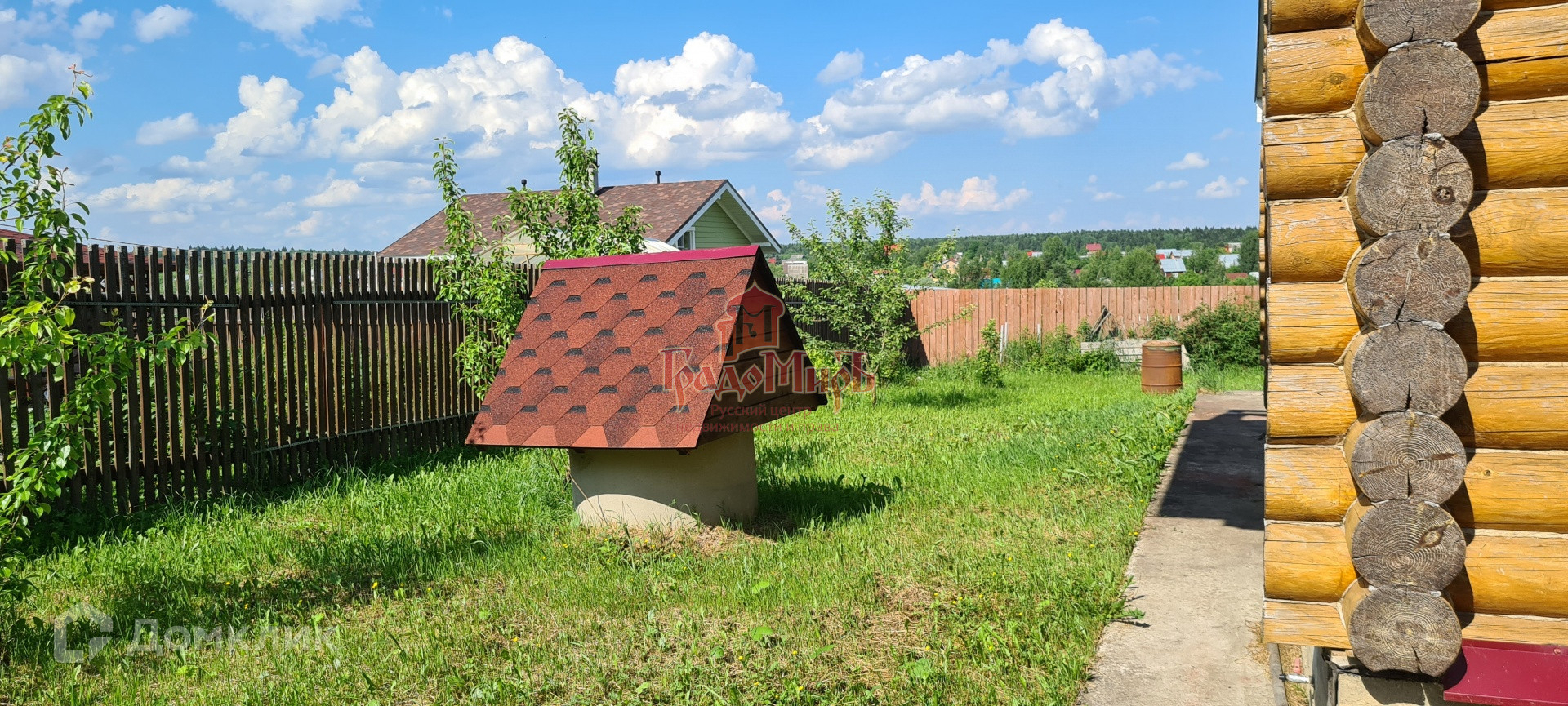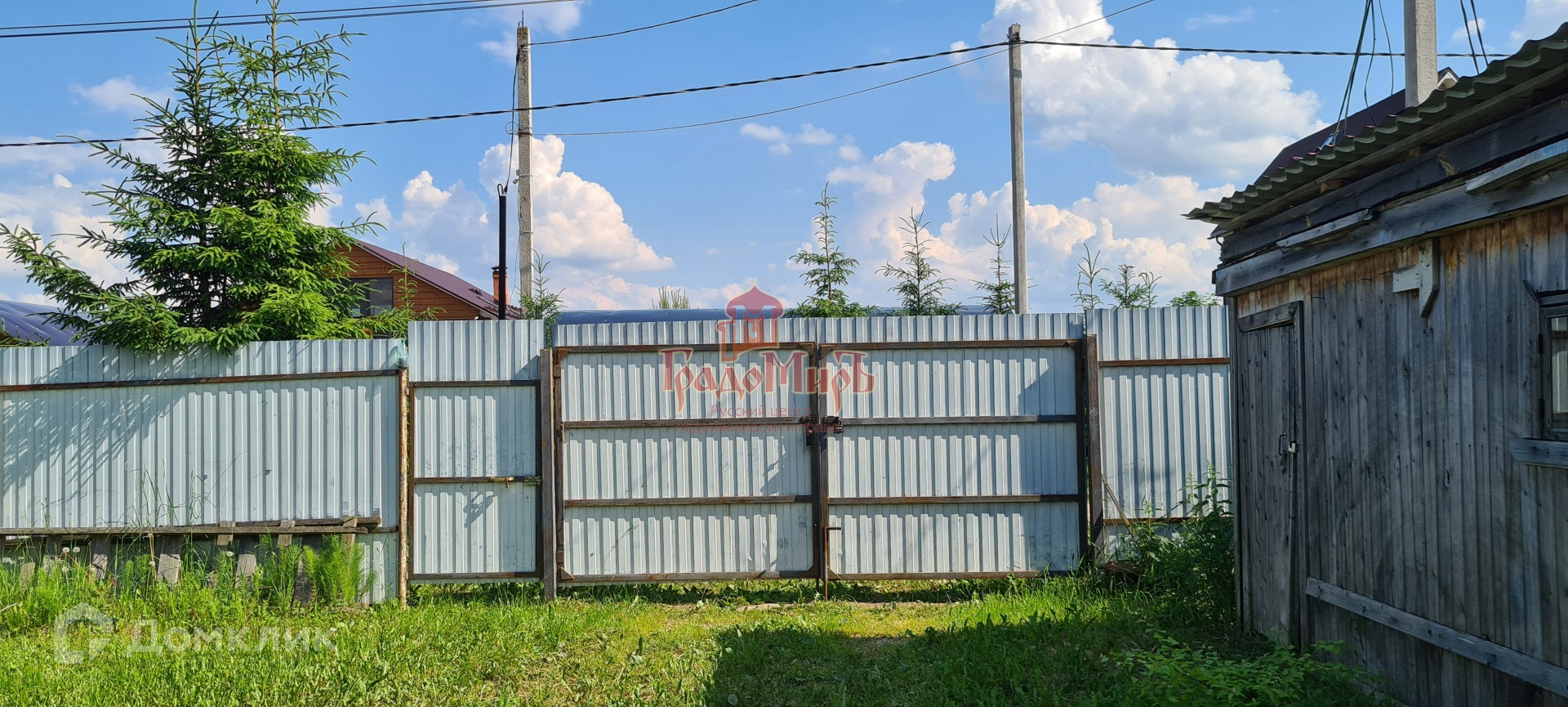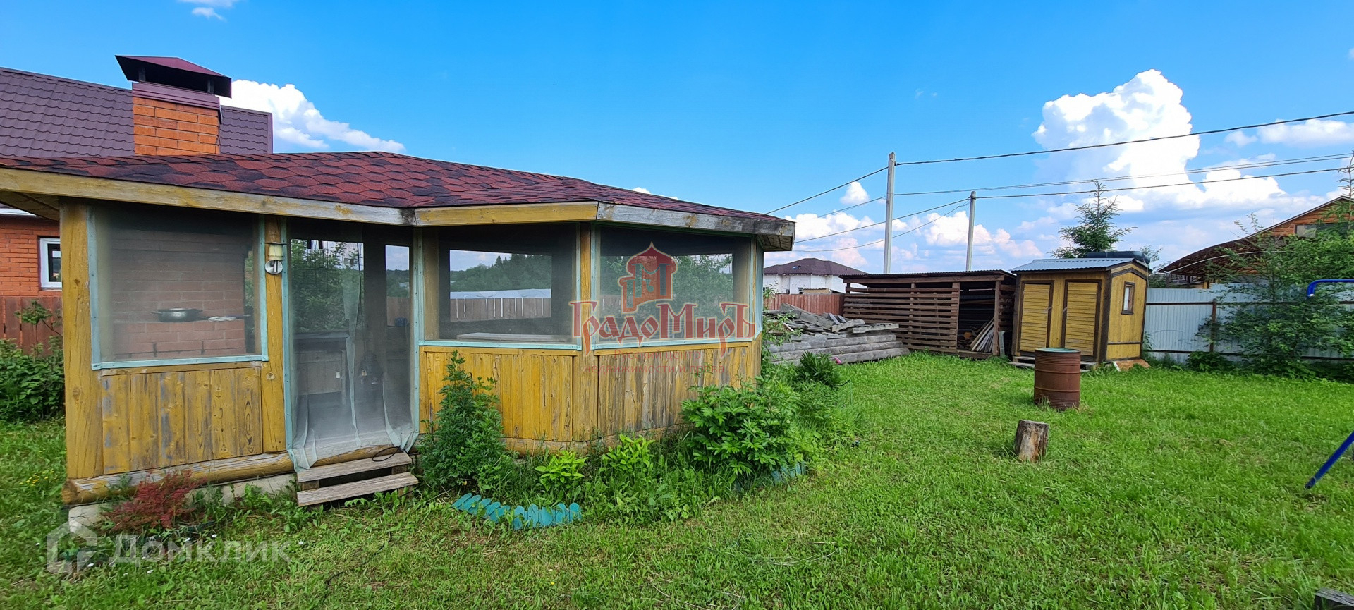 На участке: беседка с барбекю, дровник, бытовка, летний душ-туалет, плодовый деревья и кустарники.