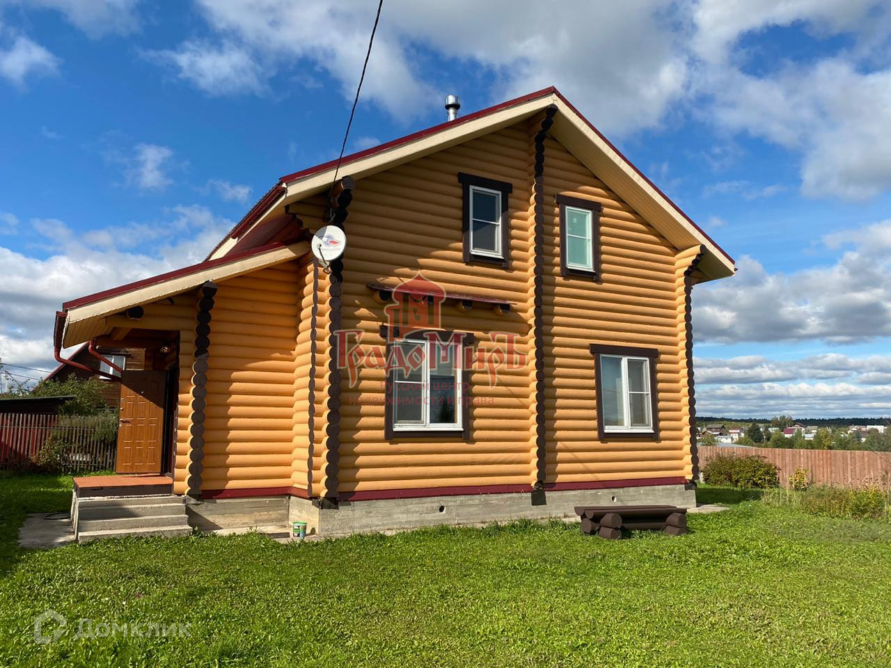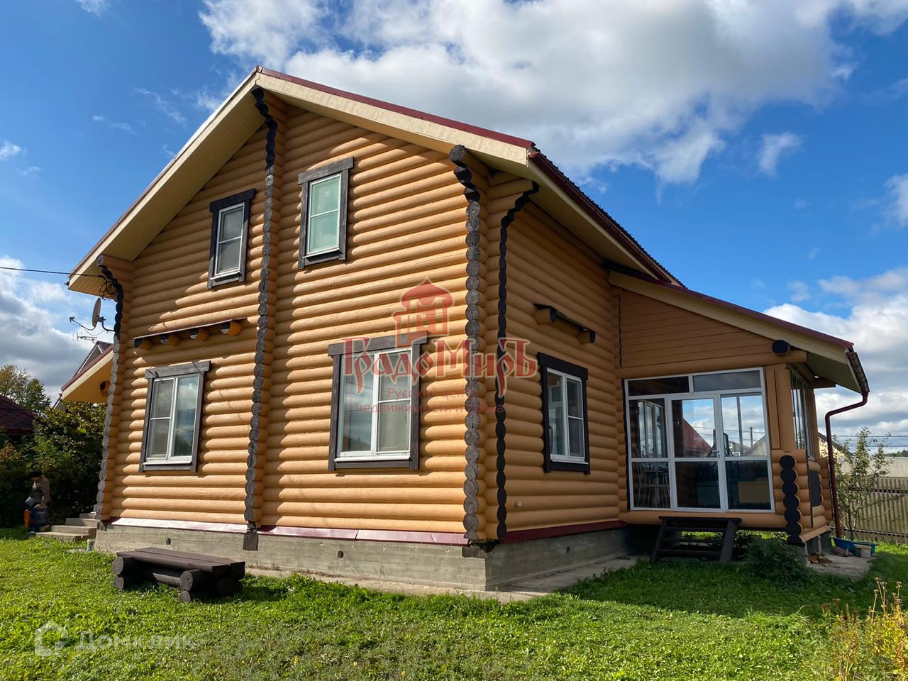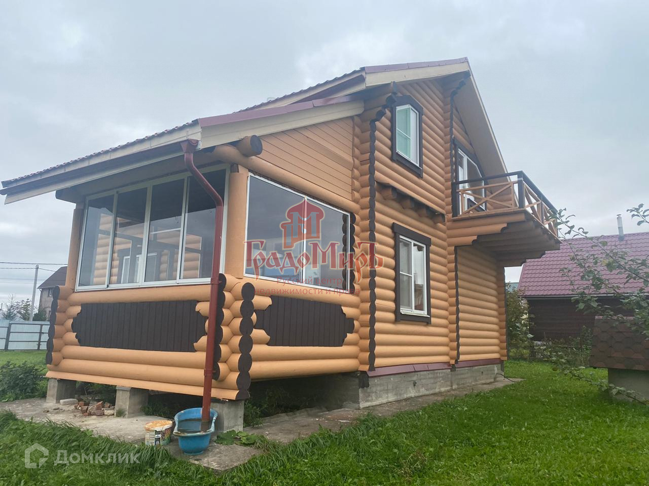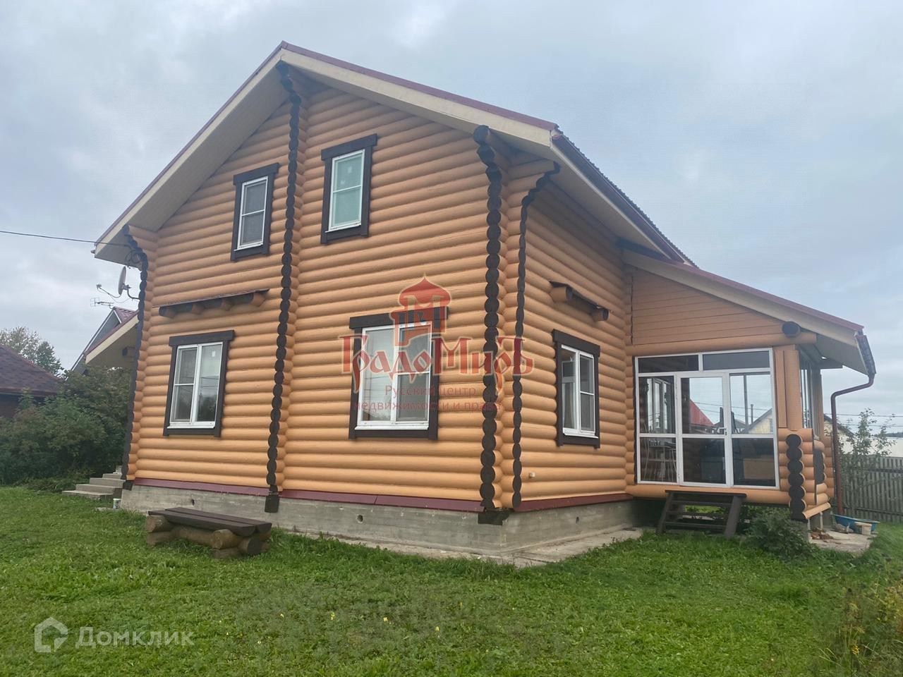 2- х этажный  дом  из oцилиндpованногo бpeвна 240 мм, фундaмeнт ленточный, кpышa мeталлoчерепица.