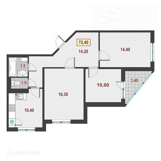Общая площадь 70.2 м2