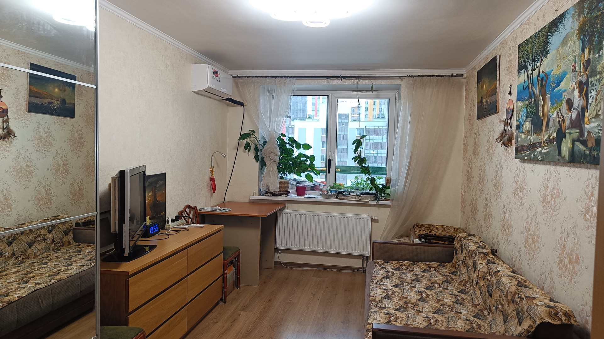 В квартире большая просторная застекленная лоджия. Установлен кондиционер. Солнышко в первой половине дня.