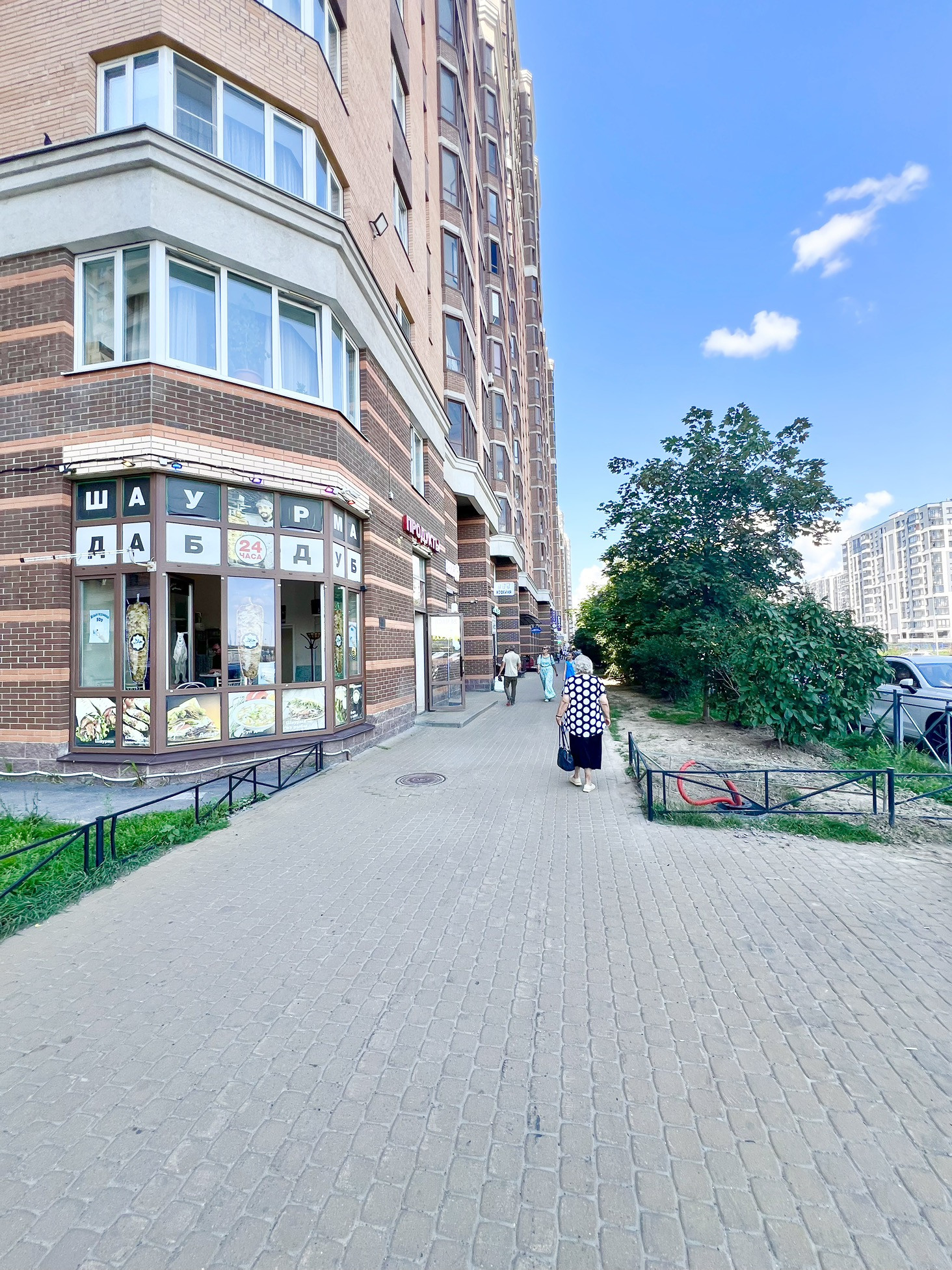 Ближайшая станции метро -Дыбенко в 20 минутах пешком или 10 минут транспортом, удобный выезд на КАД, около дома всегда есть самокаты/каршеринги.