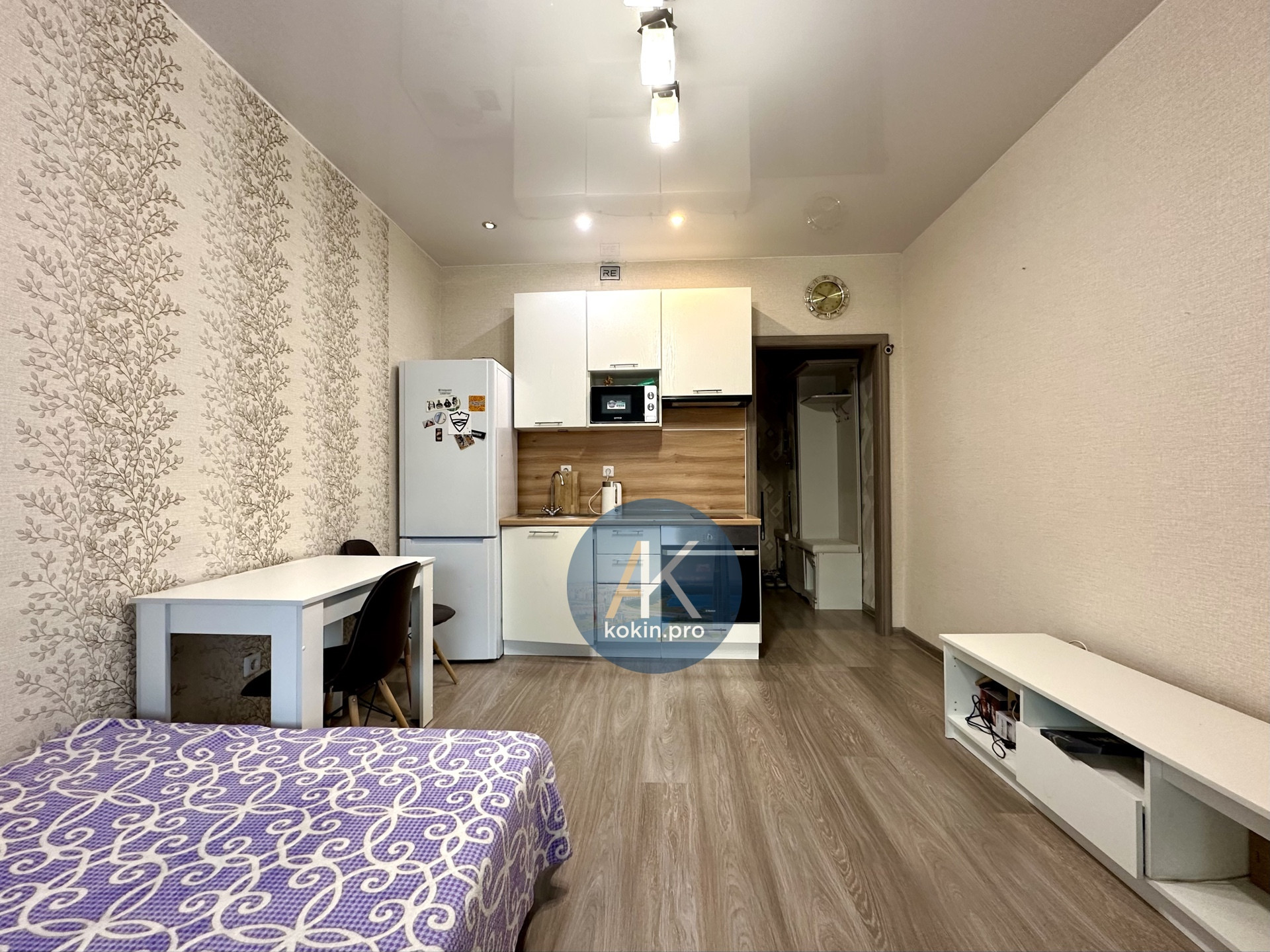 Уютная квартира, с хорошим видом из окна, установлен кухонный гарнитур, просторная лоджия. Общая площадь квартиры 21.5 кв.м, этаж 11/14.