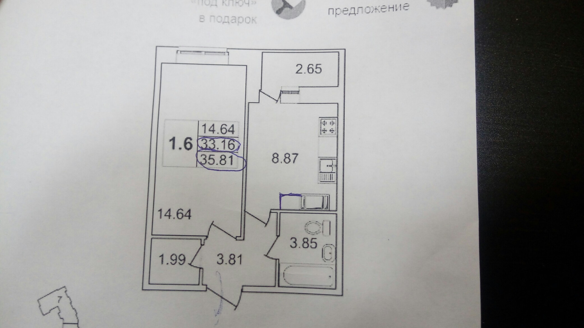 Общая площадь 33 м2