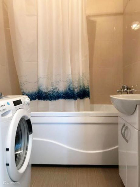 В ванной комнате стиральная машина.