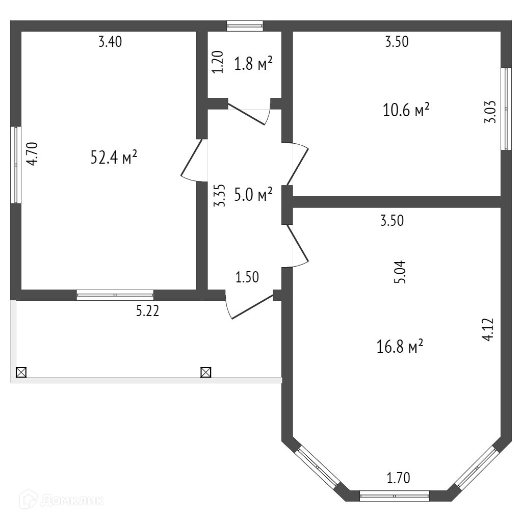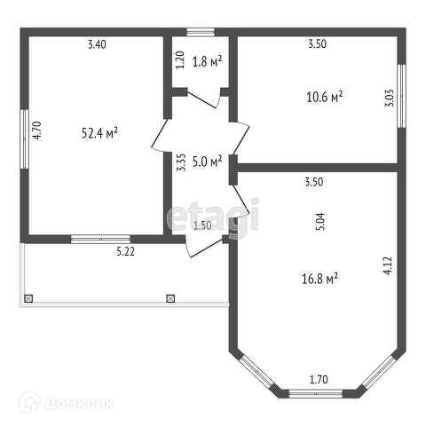 Общая площадь 52.4 м2