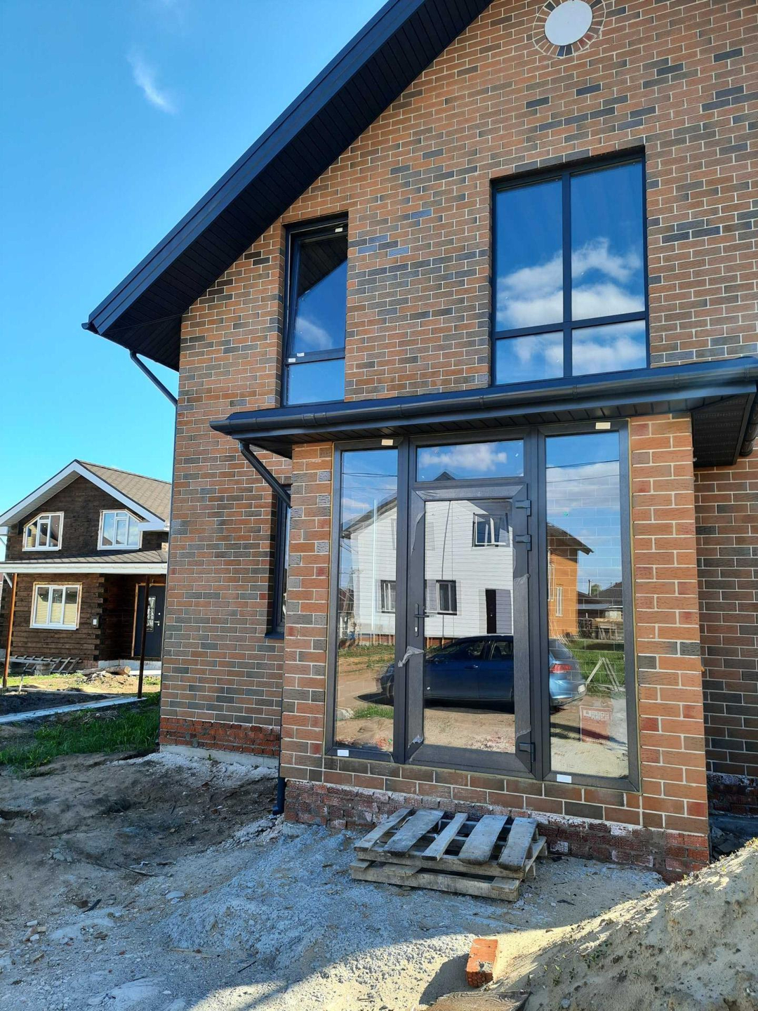 Кровля- мягкая черепица, перекрытия-жб, окна-панорамное остекление, лестница-литая бетонная