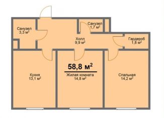Продажа двухкомнатной квартиры, 58.8 м2, улица 21-й Квартал, 7