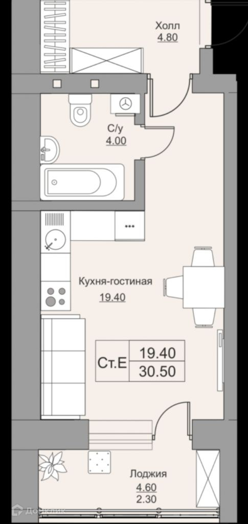 Общая площадь 31.2 м2