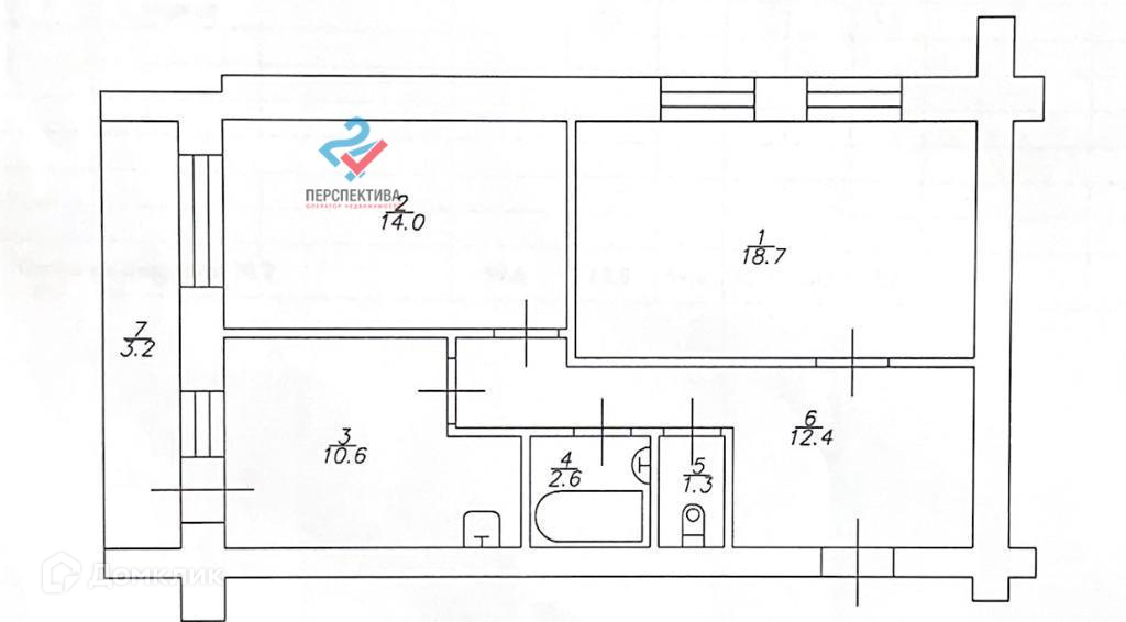 Общая площадь 59.6 м2