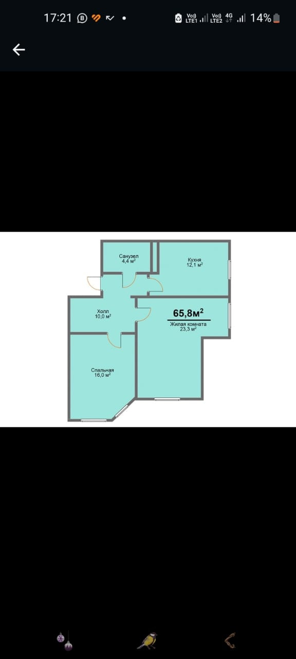 Общая площадь 65.8 м2
