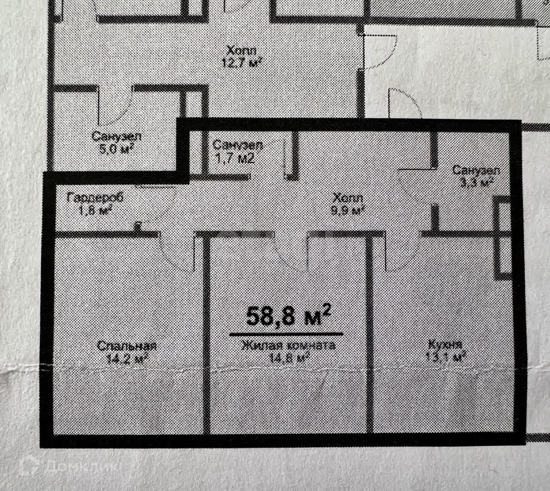 • Общая площадь квартиры 58,8 кв.м. (по выписке ЕГРН).