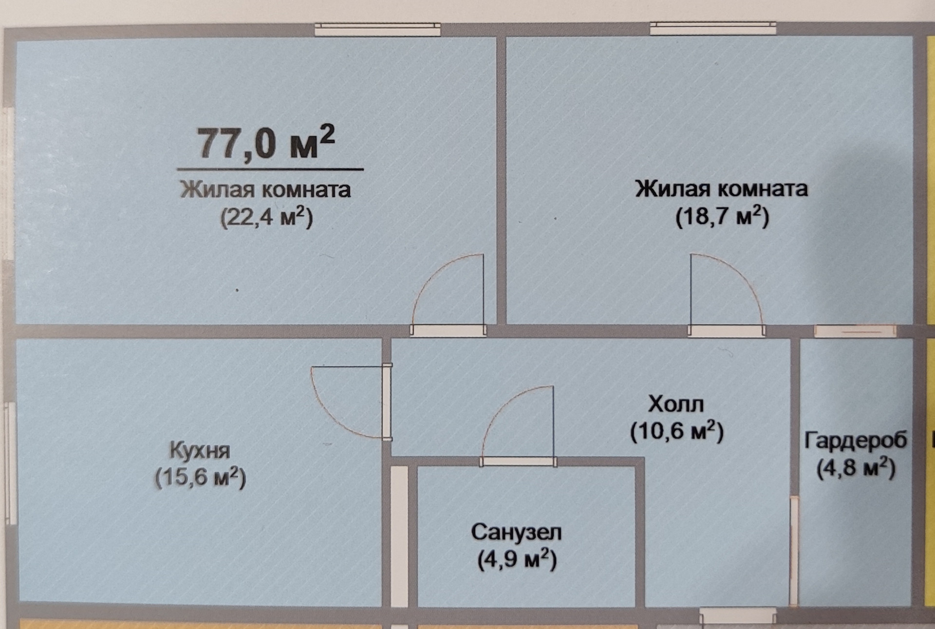 Общая площадь 77 м2