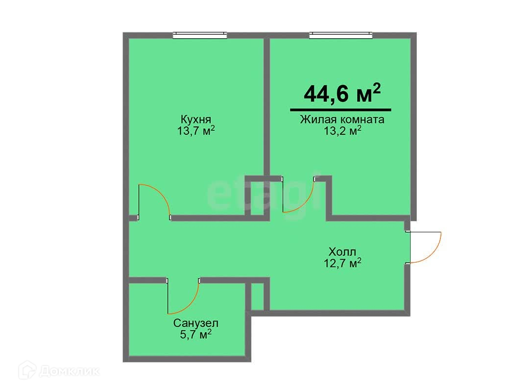 Общая площадь 44.6 м2