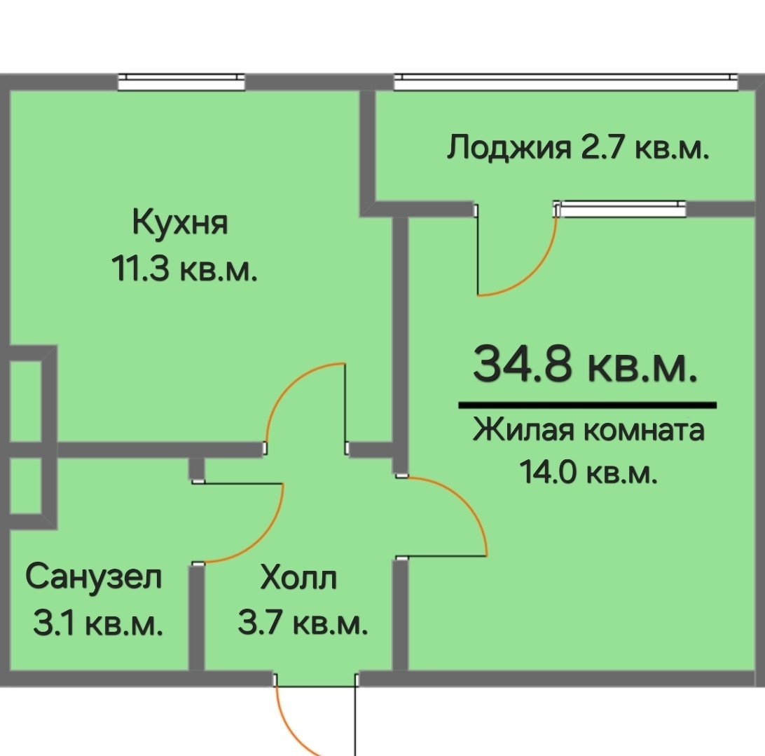 Общая площадь 34.8 м2