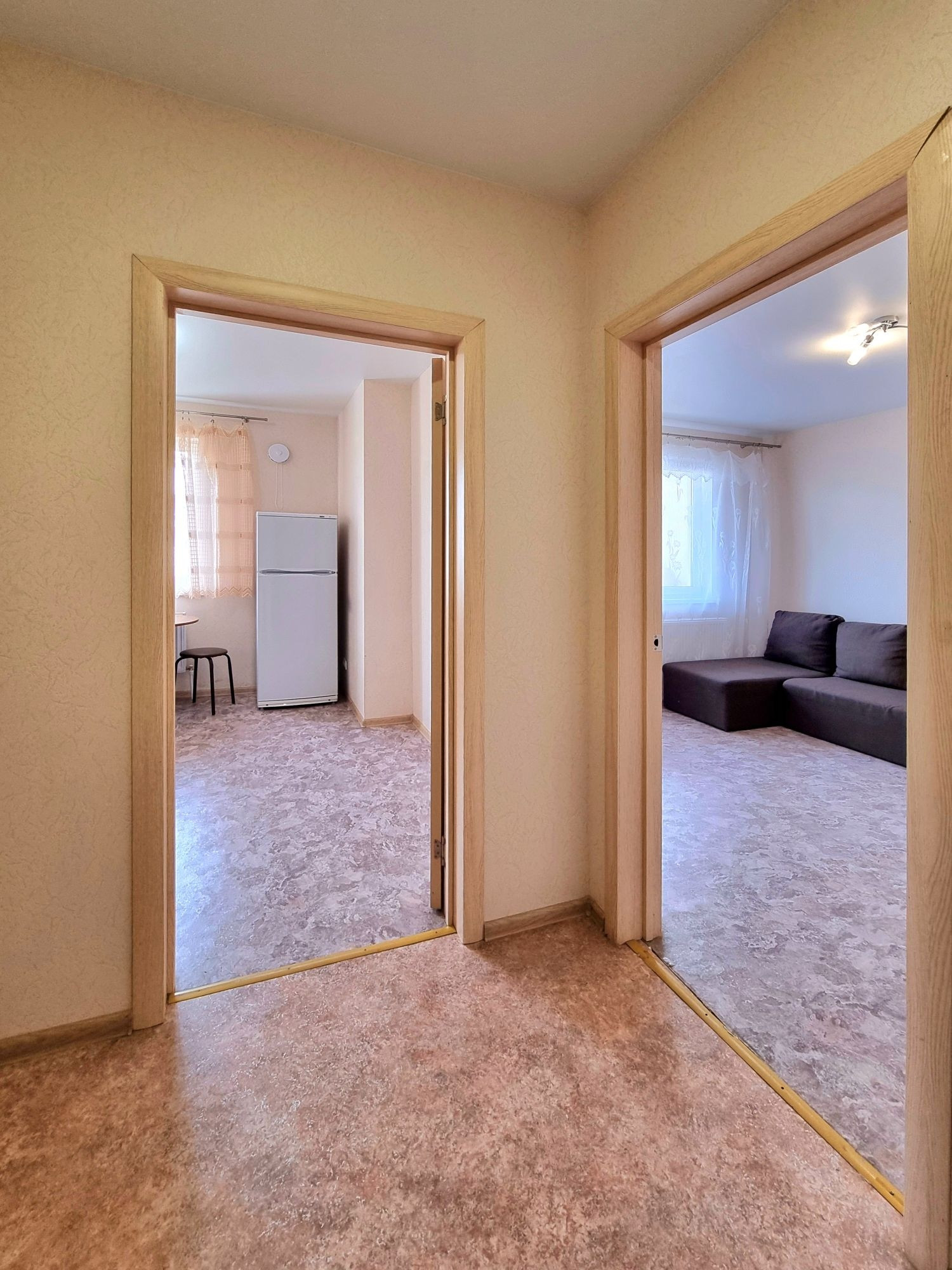 БОНУС - в квартире остаётся кухонный гарнитур, стиральная машина, холодильник, диван и шкаф-купе в комнате в комнате, прихожая в холле.