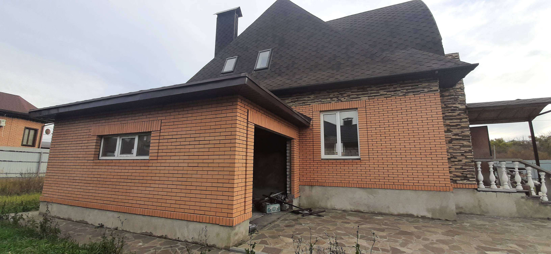 Продаётся двухэтажный коттедж, 350 метров от "Пятёрочки". Площадь 200кв.м., + гараж 25кв.м.. Фундамент на сваях, пеноблок, облицовка кирпич + камень, крыша - мягкая кровля, тротуарная плитка. Отделка под чистовую, тёплые полы, разводка электричества и воды. Электричество заведено, поданы документы на времени газа. Участок ровный, прямоугольной формы, огорожен профлистом с кирпичными колоннами. Документы готовы, разумный торг.
