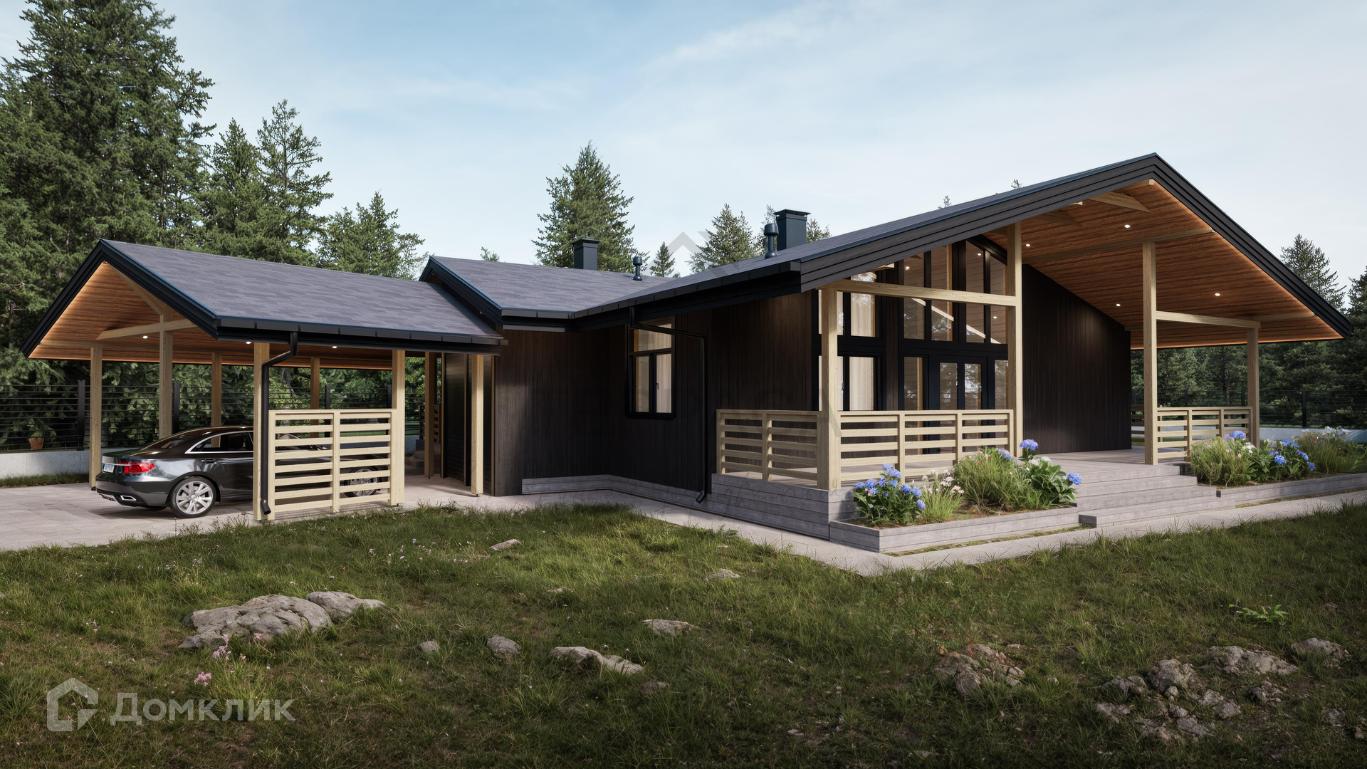 1 этаж - крытая терраса, прихожая с системой хранения, холл, просторная кухня-гостиная с камином, 4 изолированные комнаты, 2 с\у, сауна, котельная.