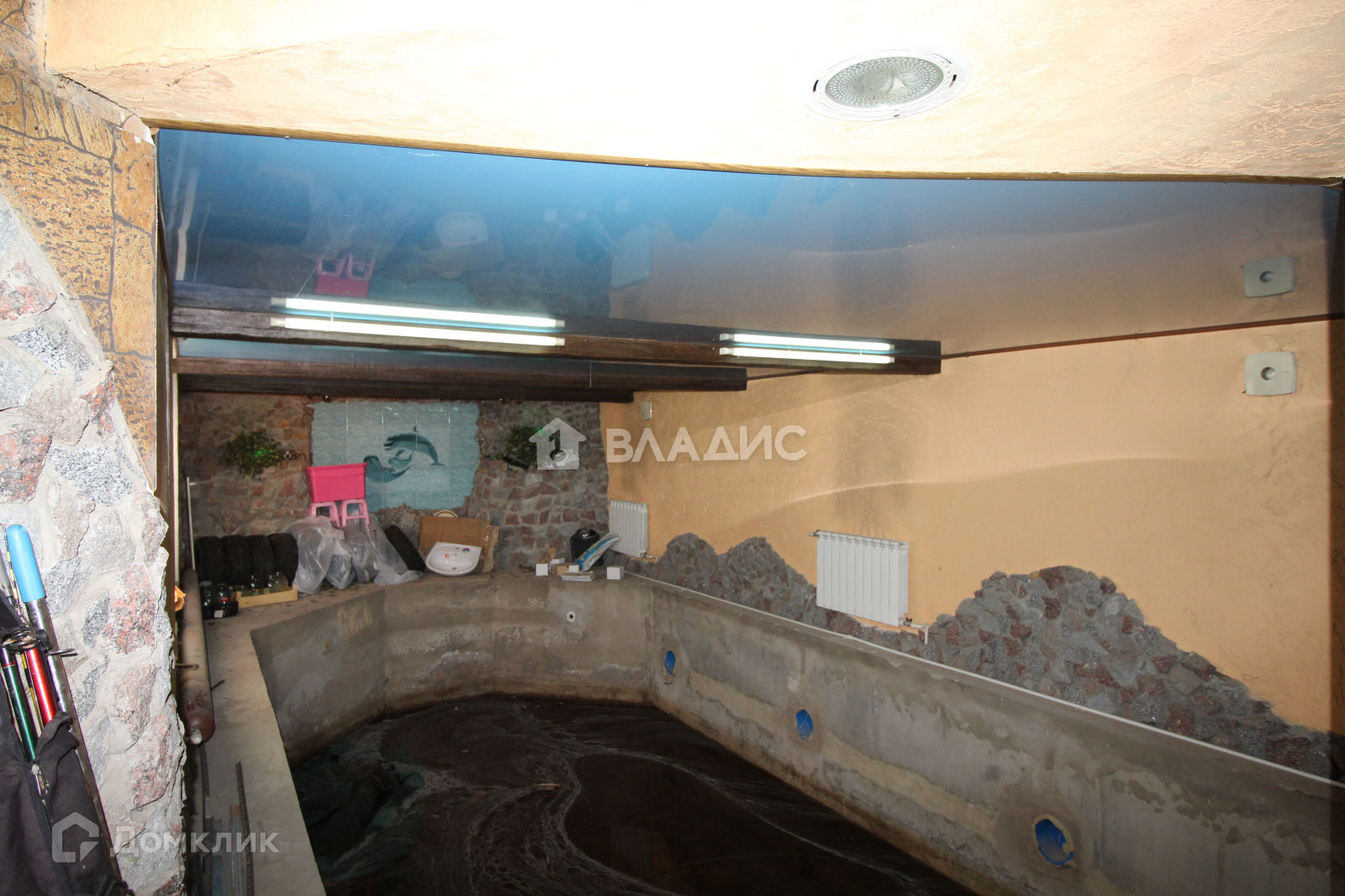 1 этаж - бассейн, сауна с дровяной печкой, совмещенный санузел. Бассейн недоделан, требует доработки.