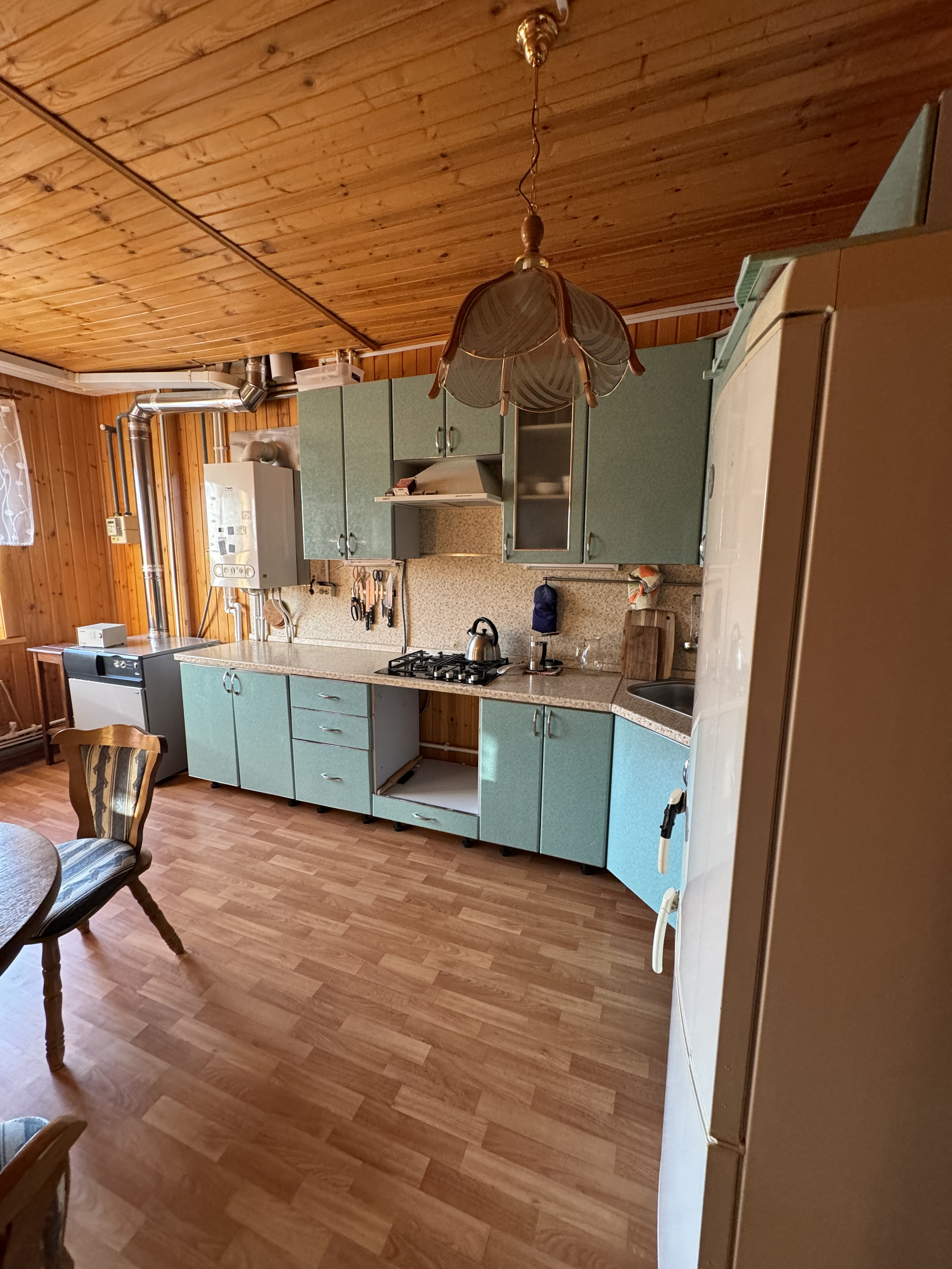 Двухэтажный: 1-ый этаж-прихожая, раздельный caнузел, просторная,светлая кухня, большой подвал,Спальня(можно как зал),комната с камином,лестница деревянная, 2-этаж-две уютные спальни с прекрасными видами. Водопровод и газ центральные,септик. Выделена зона отдыха: детская площадка, мангальная зона с беседкой. Также имеется 2 теплицы, гостевой домик с верандой(можно под баню) и различные фруктовые и ягодные насаждения
