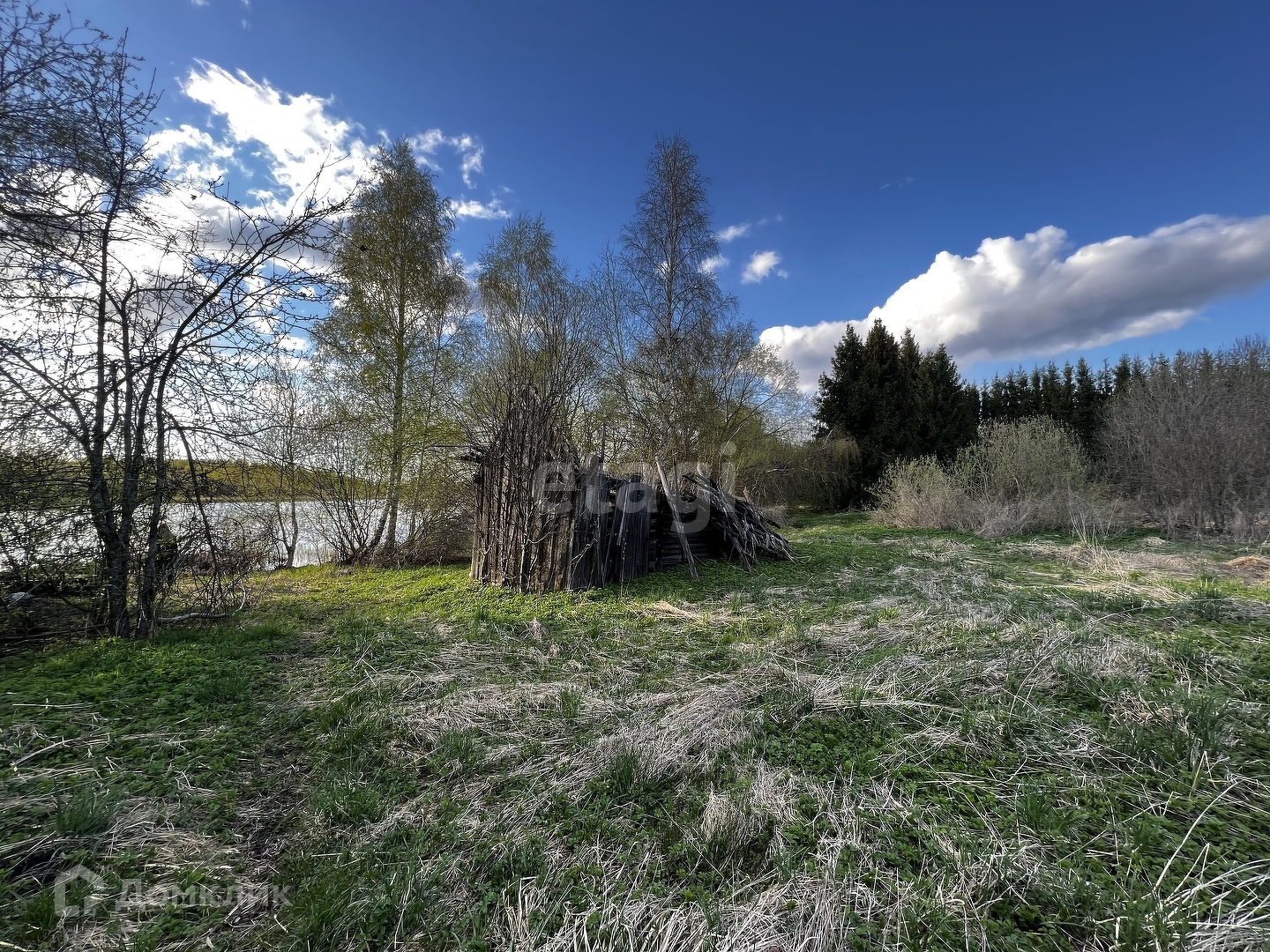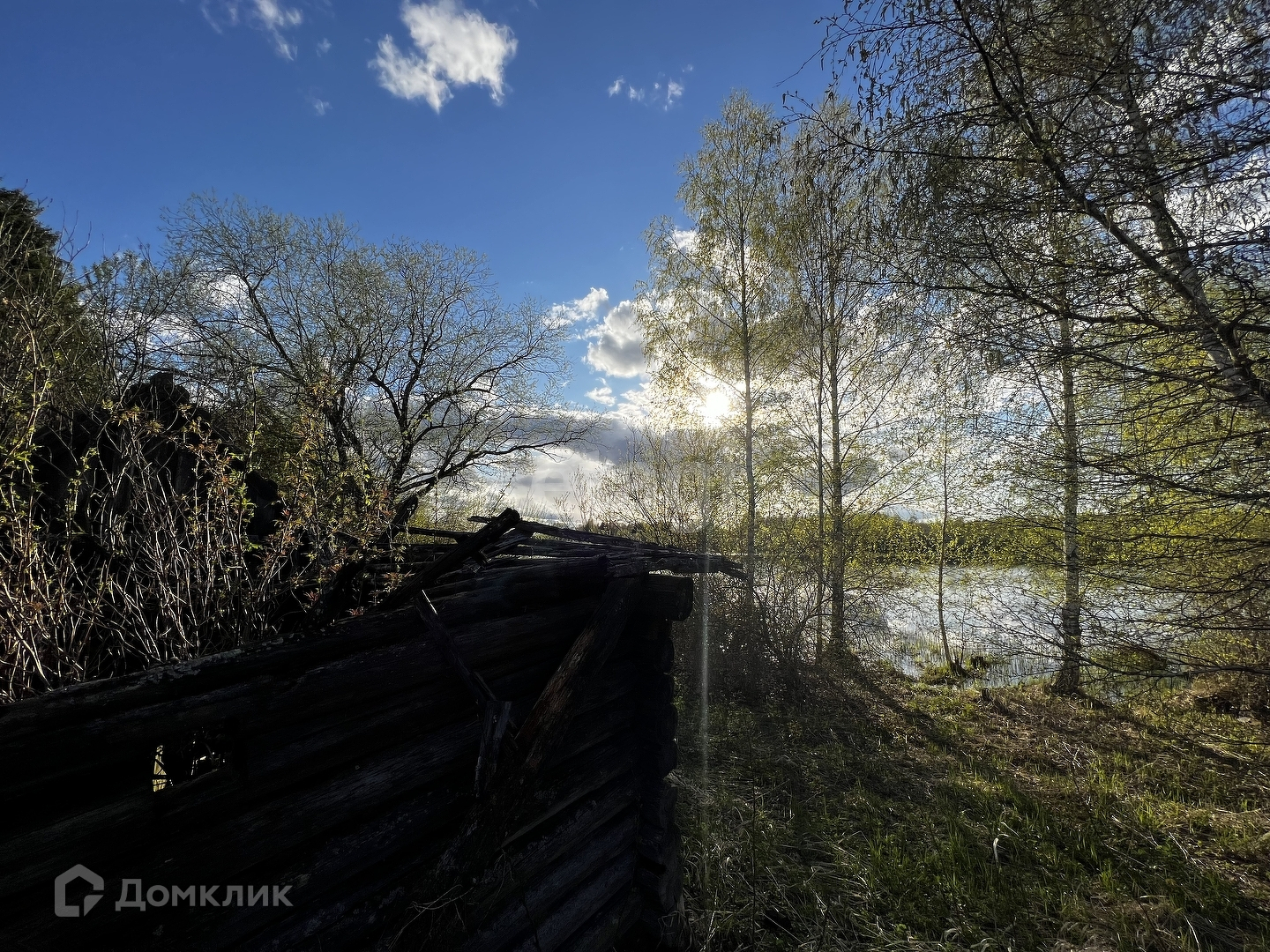 На участок заведено электричество, стоит столб, колодец, много плодоносных деревьев, выход к берегу с крыльца в 15 шагах. Удобный заход в воду, у берега стояла баня.