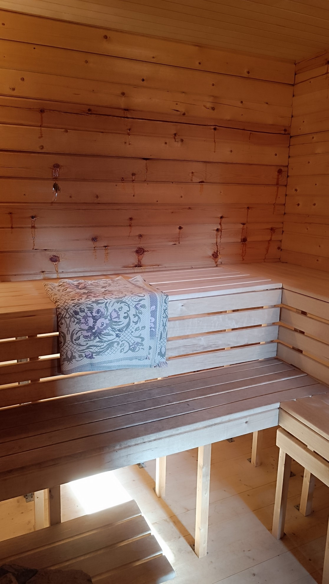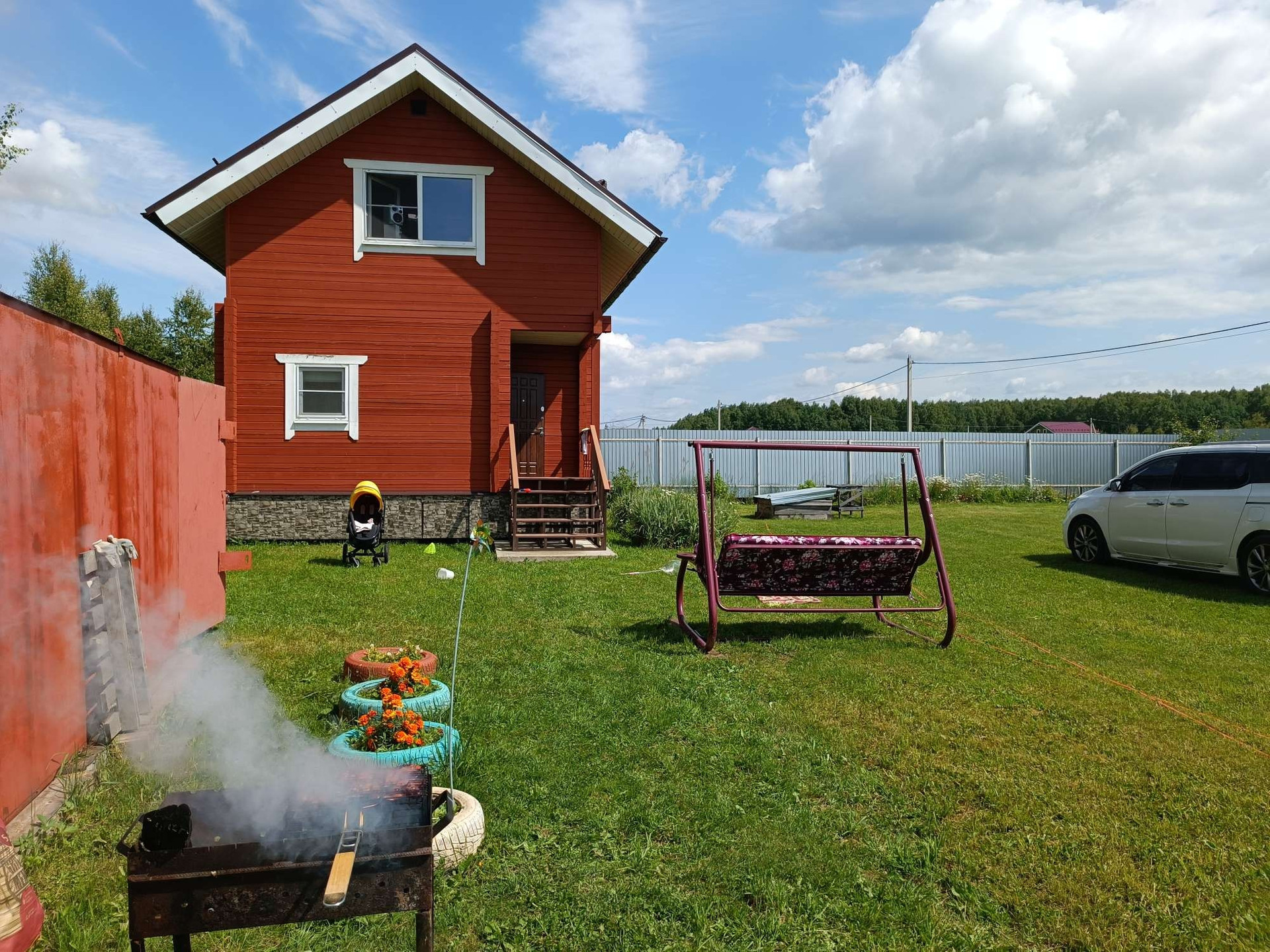 Продаётся участок 19 соток с построенным 2 этажным домом - баней общей площадью 77.6 кв.м. Дом из профилированного бруса 140*140 см, установлен на 18 жб сваях (4 метра). На участке много плодоносных ягодных кустов (малина, смородина 2 видов, крыжовник, жимолость, клубника), есть яблони и груши, высажены ёлки и ели, вишня, есть отдельные клумбы под цветы. Установлена большая теплица, есть небольшой огород (частично земля завозилась отдельно для посадки). Так же участок огорожен забором (большие ворота, 2 калитки на две стороны, собственный выход в лес) из окращенного оцинкованного профлиста (2000*0,4мм. ), установлен дачный деревянный туалет, металлический гараж, 2 кубические емкости под воду для полива, построена небольшая дровница, выкопана силосная яма. В дом заведена вода из скважины (глубина 64 м), которая оборудована металлическим Кессон ом 1,5*1,5, гидроаккумулятором на 150 л. и прочим оборудованием. В доме оборудована баня (топка из соседнего помещения), чугунная печь Везувий (хорошие камни, гималайская соль), в помывочной установлен тёплый пол (электрический) и электрический бойлер на 100 литров, слив воды производится в установленные (закопанные) за домом кубовые кольца (2 кольца), предусмотрен перелив за пределы участка (есть вывод в канаву), оборудована входная группа (крыльцо с лестницей на бетоном основании), установлена хорошая деревянная Лестница на 2 этаж. На участке выделено место под строительство дома, к которому так и не приступили. Вдоль участка положен газ. Хороший посёлок с постоянным проживанием. Достаточно близко до города (около 15 минут в пути). Всё делалось для себя (частично выравнивали участок, убирали лишнюю растительность и тд, участок регулярно косится и облагораживался, продаётся почти всё что есть ( кровати, столы, тумбочки, полки, шкафы, камод, стулья, посуда и тд), так же готовы рассмотреть отдельно продажу имеющегося оборудования (газонокосилка, бензиновый триммер, автомойка керхер, холодильник, грязевой насос Беламос и тд). Готовы ответить на все интересующие вопросы, торг.