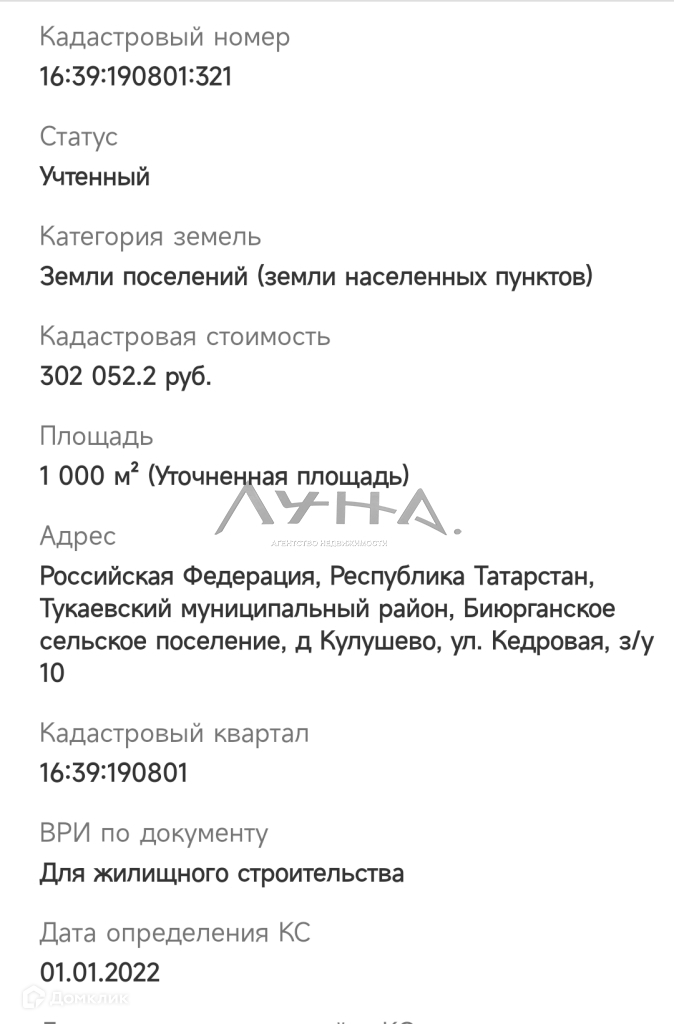 Участок под ИЖС, 10 сот. на продажу в деревне Кулушево