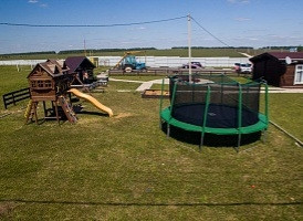 В поселке есть дороги, внешнее ограждение, электричество, детский городок с батутом, подведен газ.
