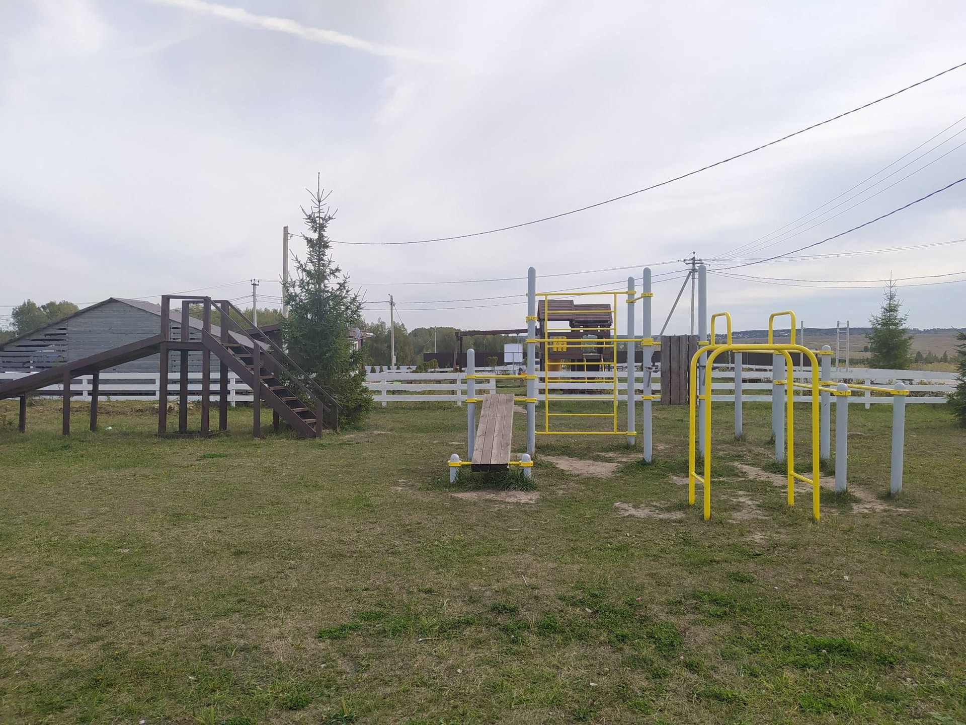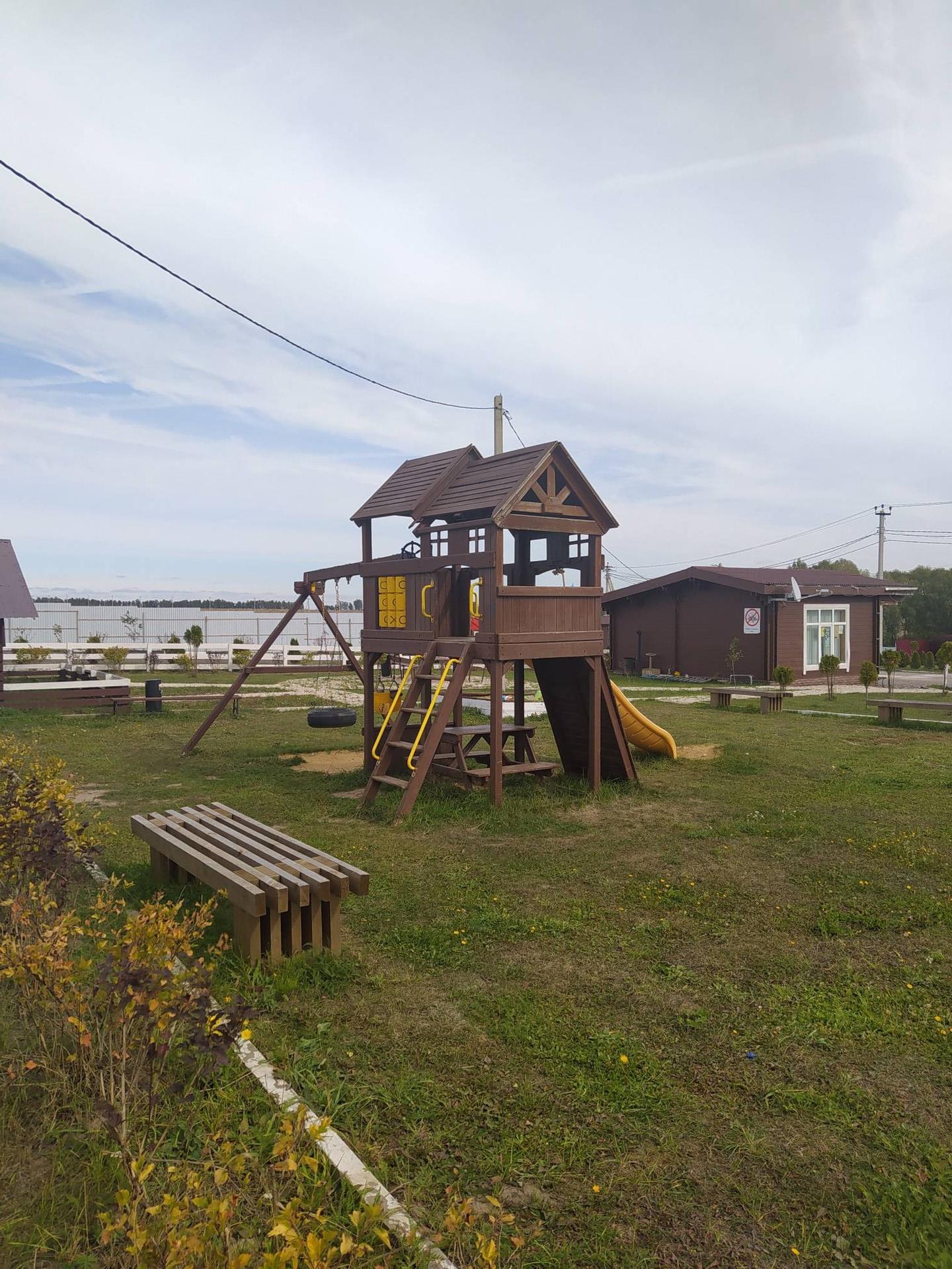 В поселке есть дороги, внешнее ограждение, электричество, детский городок с батутом, подведен газ.