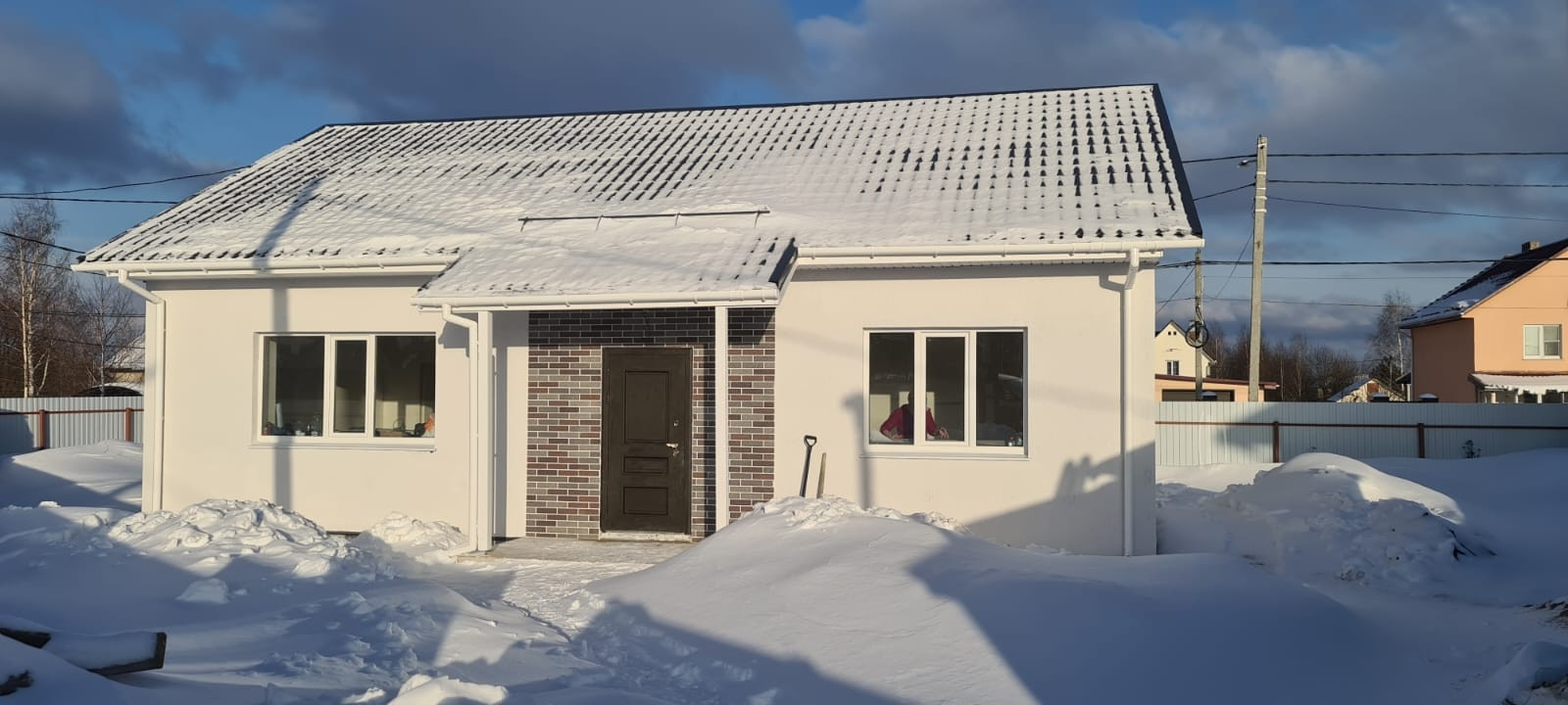 Планировка: прихожая, три комнаты (12,17,11м2), кухня-гостиная 18м2, ванная комната 5.4м2, бойлерная 4.5м2. Дом уютный и светлый за счёт больших окон.
