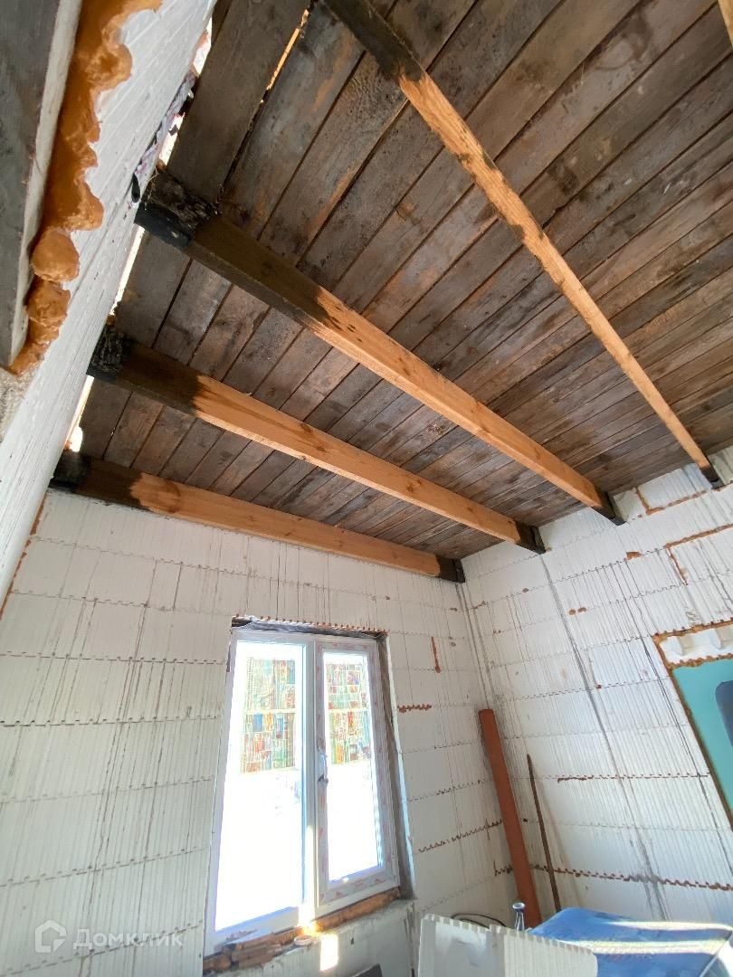 Перекрытие первого этажа ж/б плиты, второго этажа деревянные брусья проложенные через каждые 40 см.