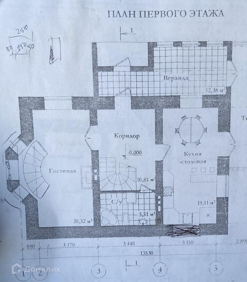 Высота потолка на 1 этаже 3м, 2 этаж полумансардный 2,4м.