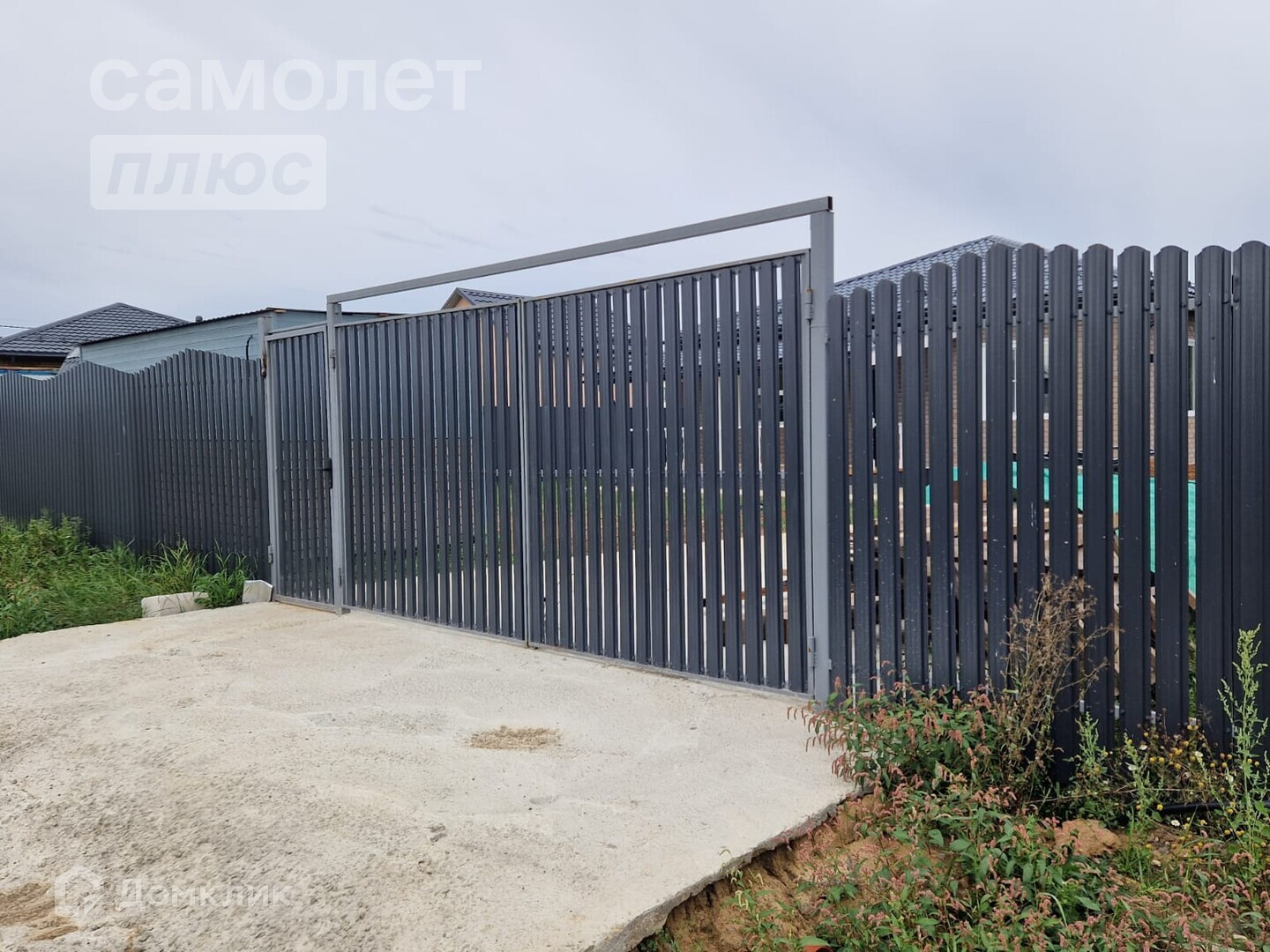 Участок огорожен по кругу забором.